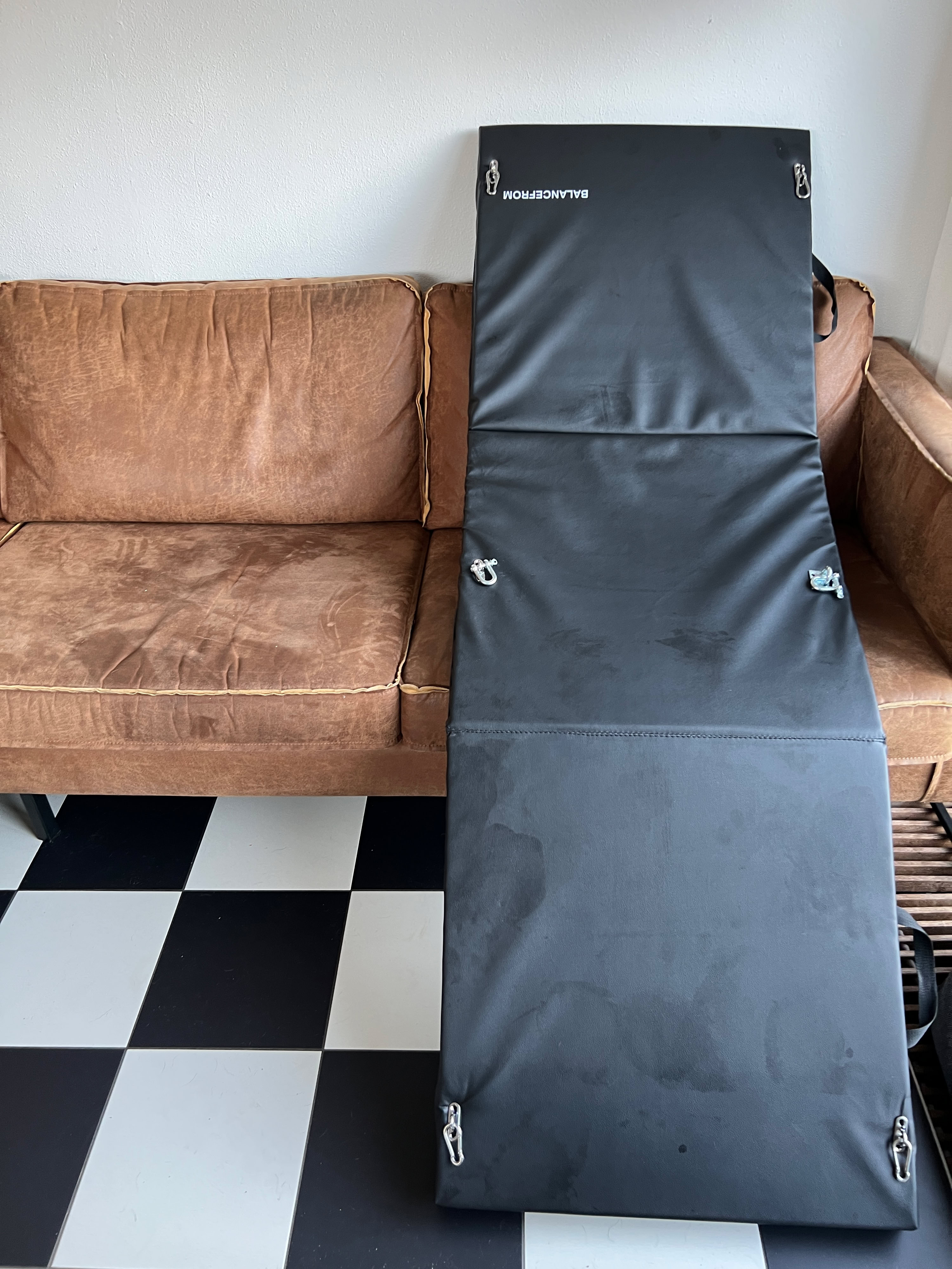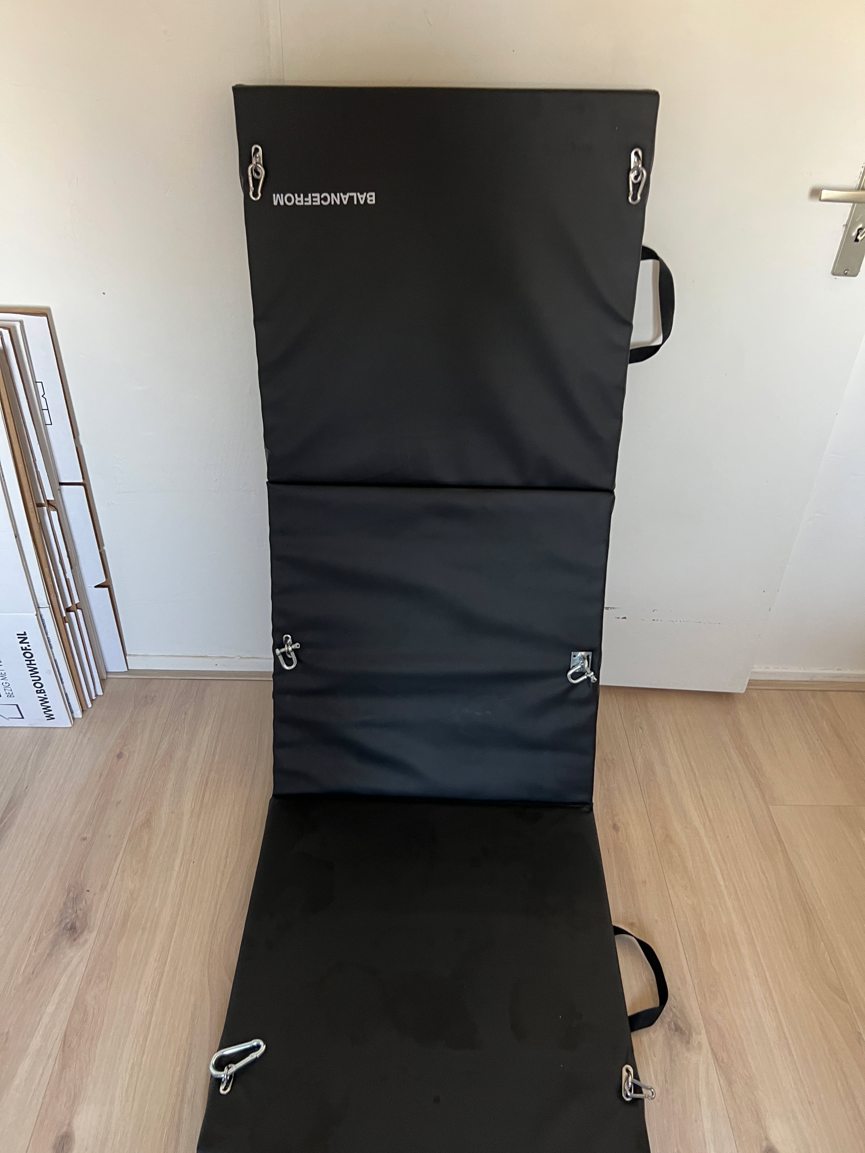 Een wens van mijn is een bondage board waar ik mezelf op vast kan zetten, ipv dat ik op de bank zit. Aangezien deze rond de 300 liggen maar eens een doe het zelf project begonnen met een opvouw sport kussen en wat losse artikelen.