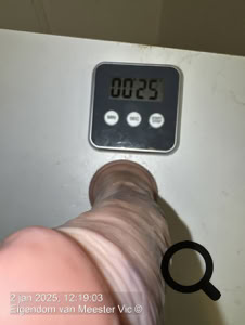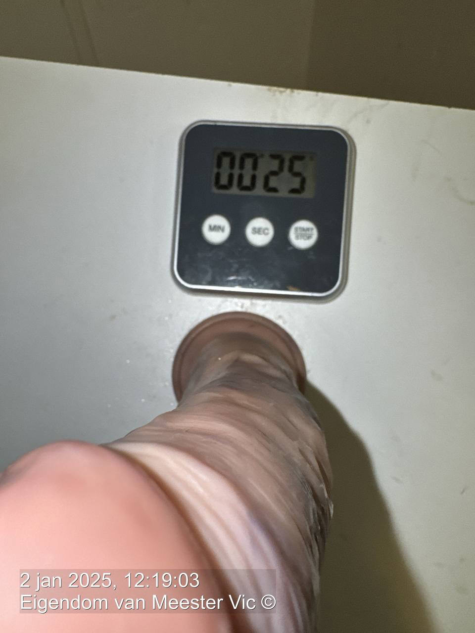 Tijdens de eerst test van 3 minuten had ik 25 keer de teller ingedrukt en stelde mijn Meester het doel op 30 stuks,Zo geen 30 aanrakingen, 2min en 15 aanrakingen extra.