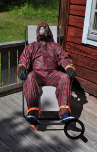 Forced lichaams training op home trainer met zweet pak of hazmat suit of latex droom zweet pak / of buiten