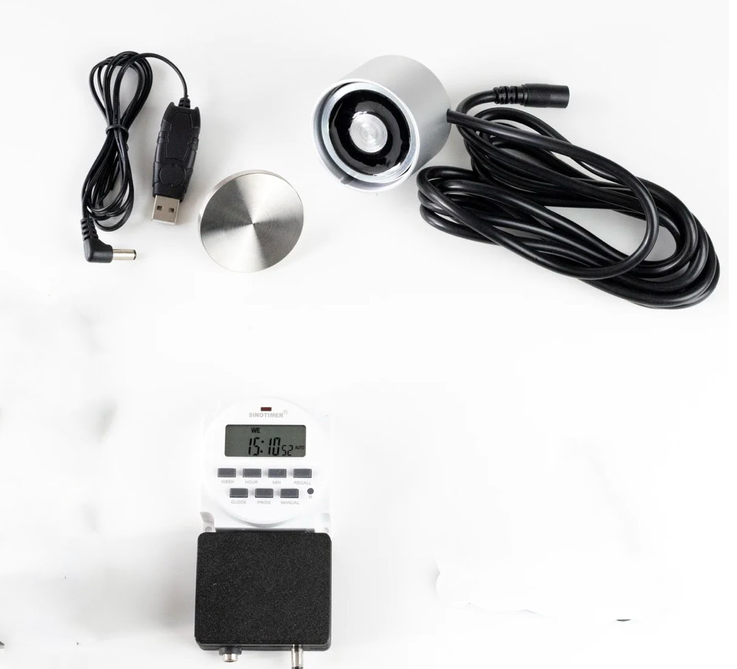 De timer zit vervolgens gekoppeld aan een draagbare accupack.