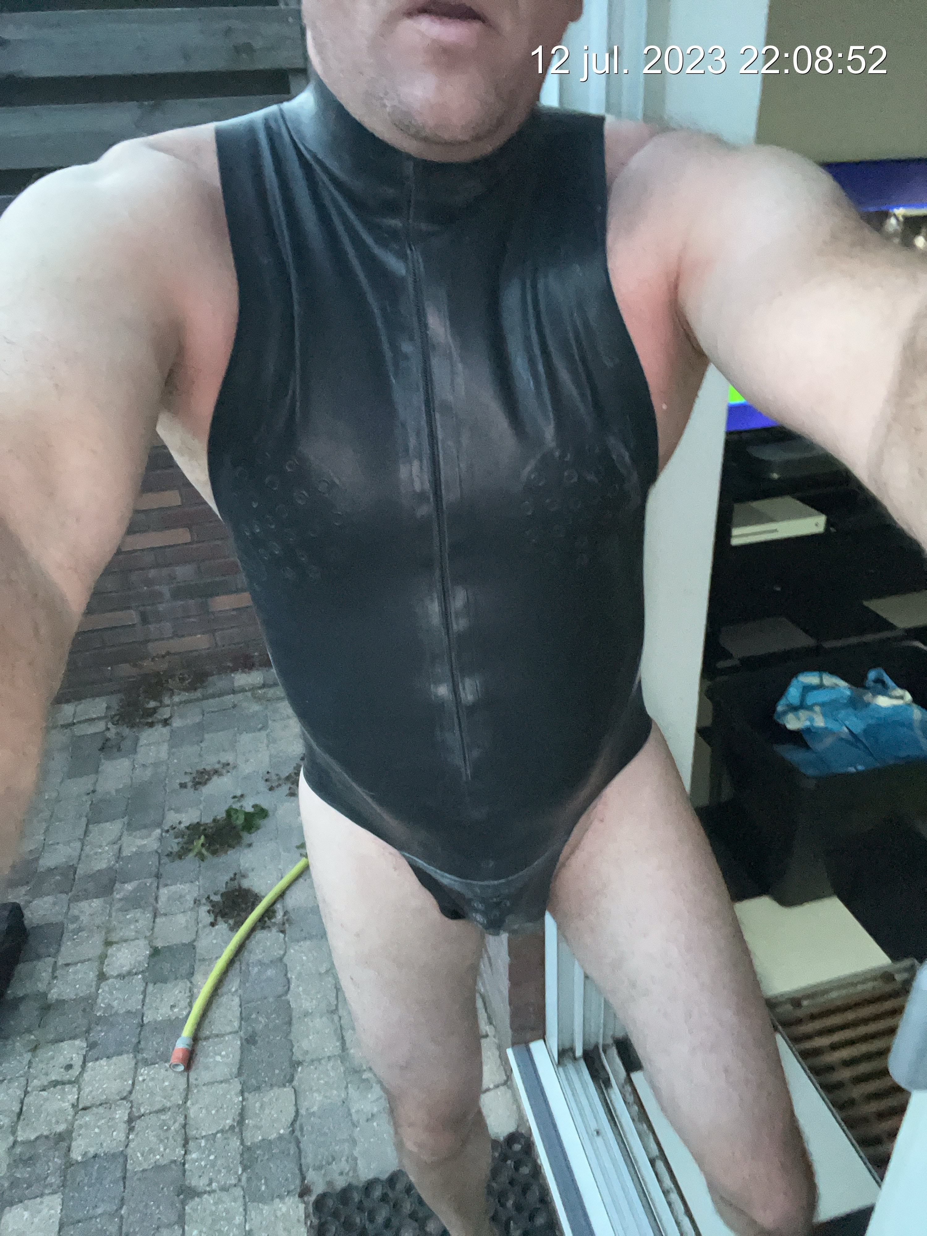 Ik zweette weer als een malle, mogelijk door de extra laag latex nog erger .