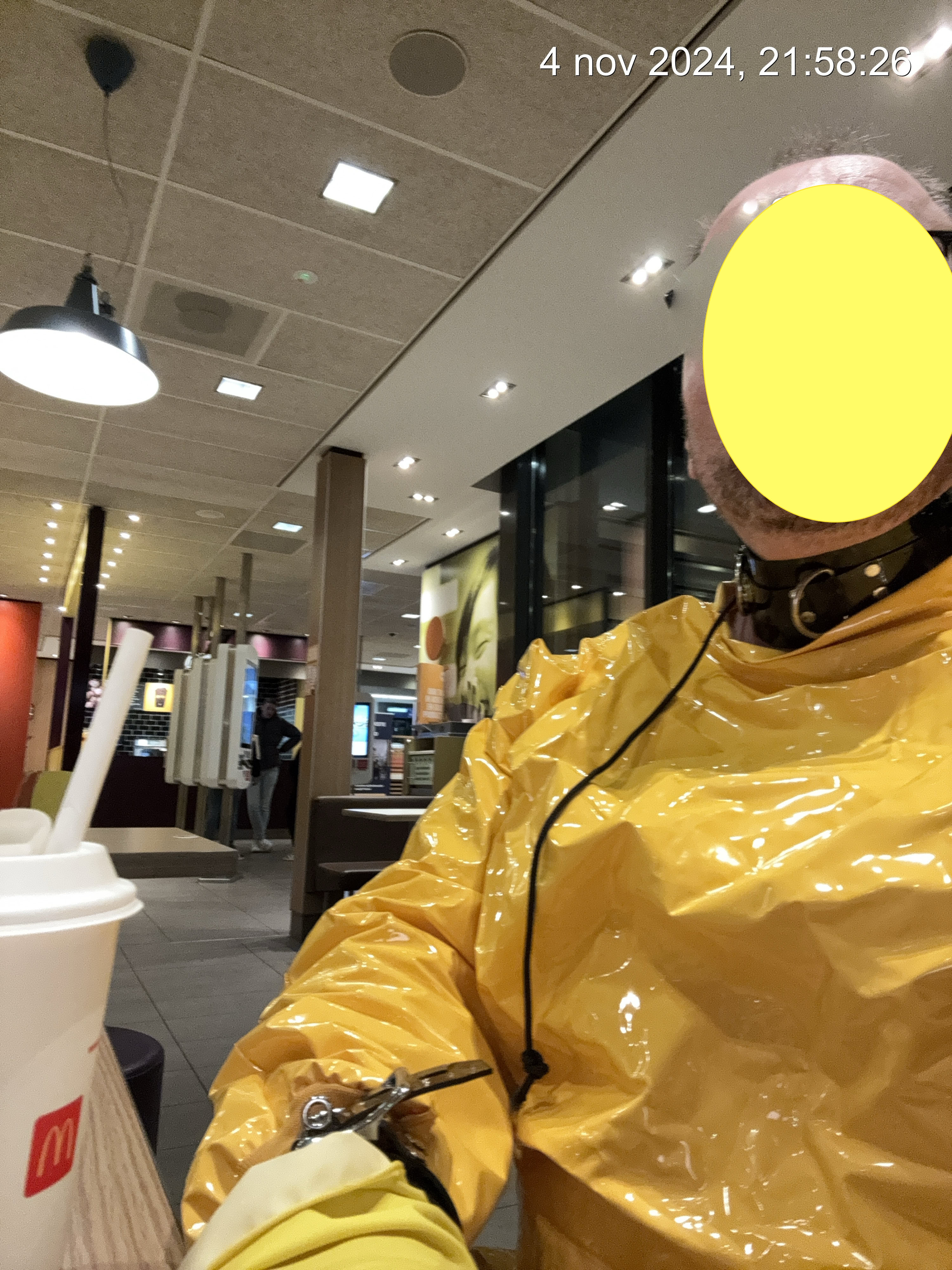 Via een bevriend dominante een opdracht gekregen om na een werk meeting avonds naar de Mac Donalds te gaan in dit pak.