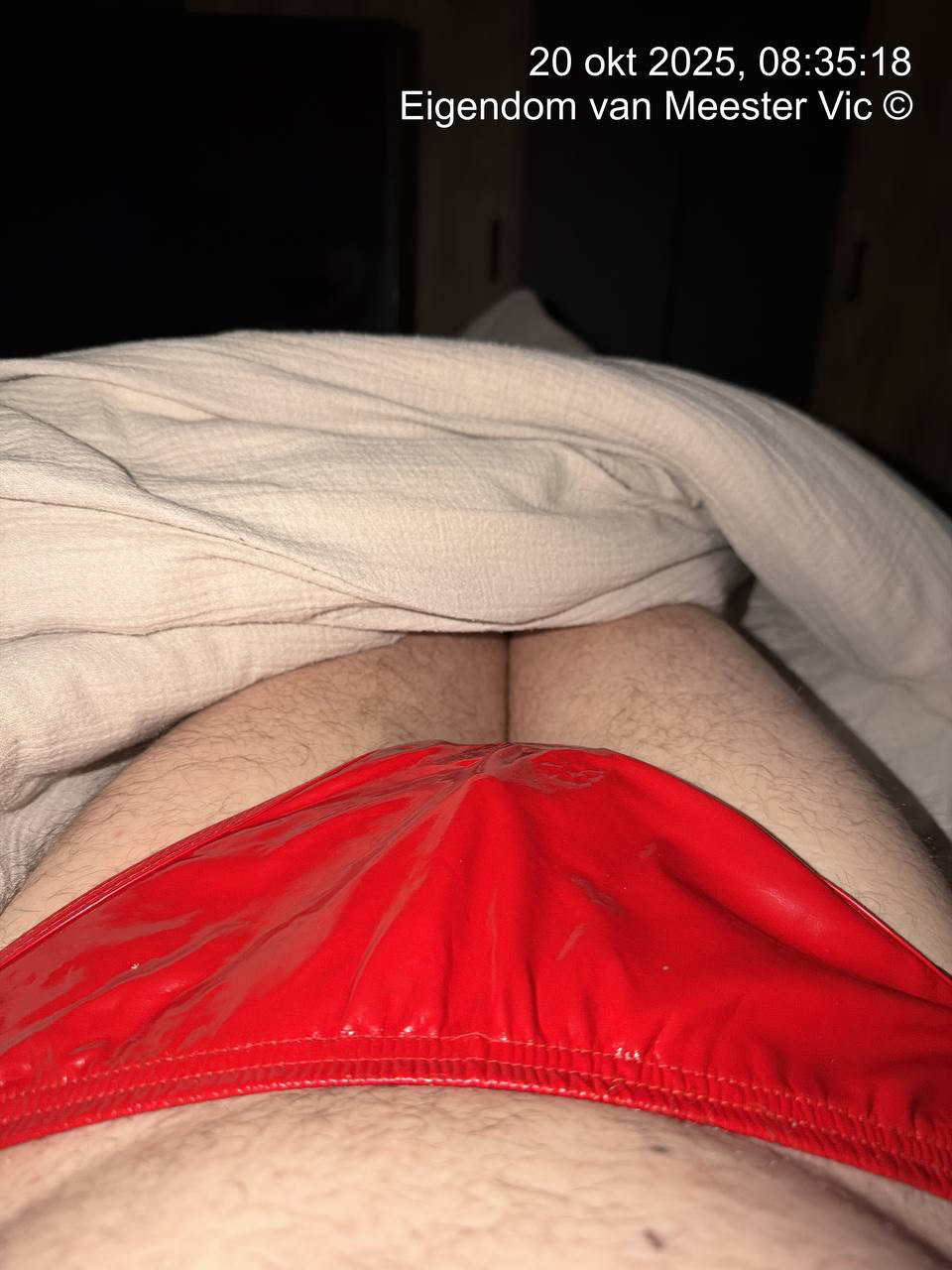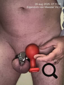 Als ik als slaaf niet voldoende mijn opdracht heb uitgevoerd of ik heb avonds niet mezelf verhoerd ( kan zijn door drie afspraak of andere reden ) moet ik slapen met de rode bal plug van 7,5 cm dik en de rode prik slip met pijnlijke gemene prik schijfjes rond ballen en houden zo micro ding in toom.