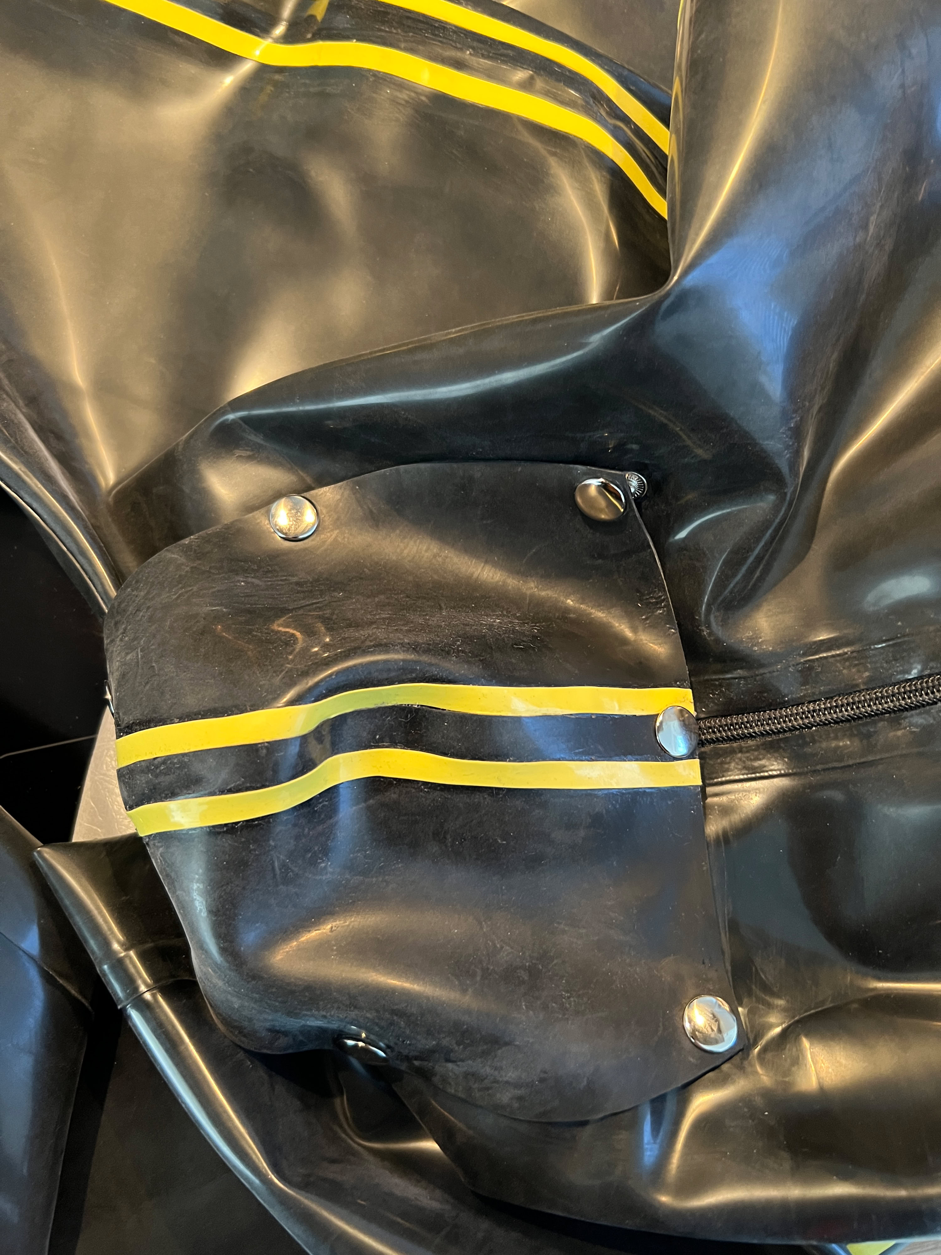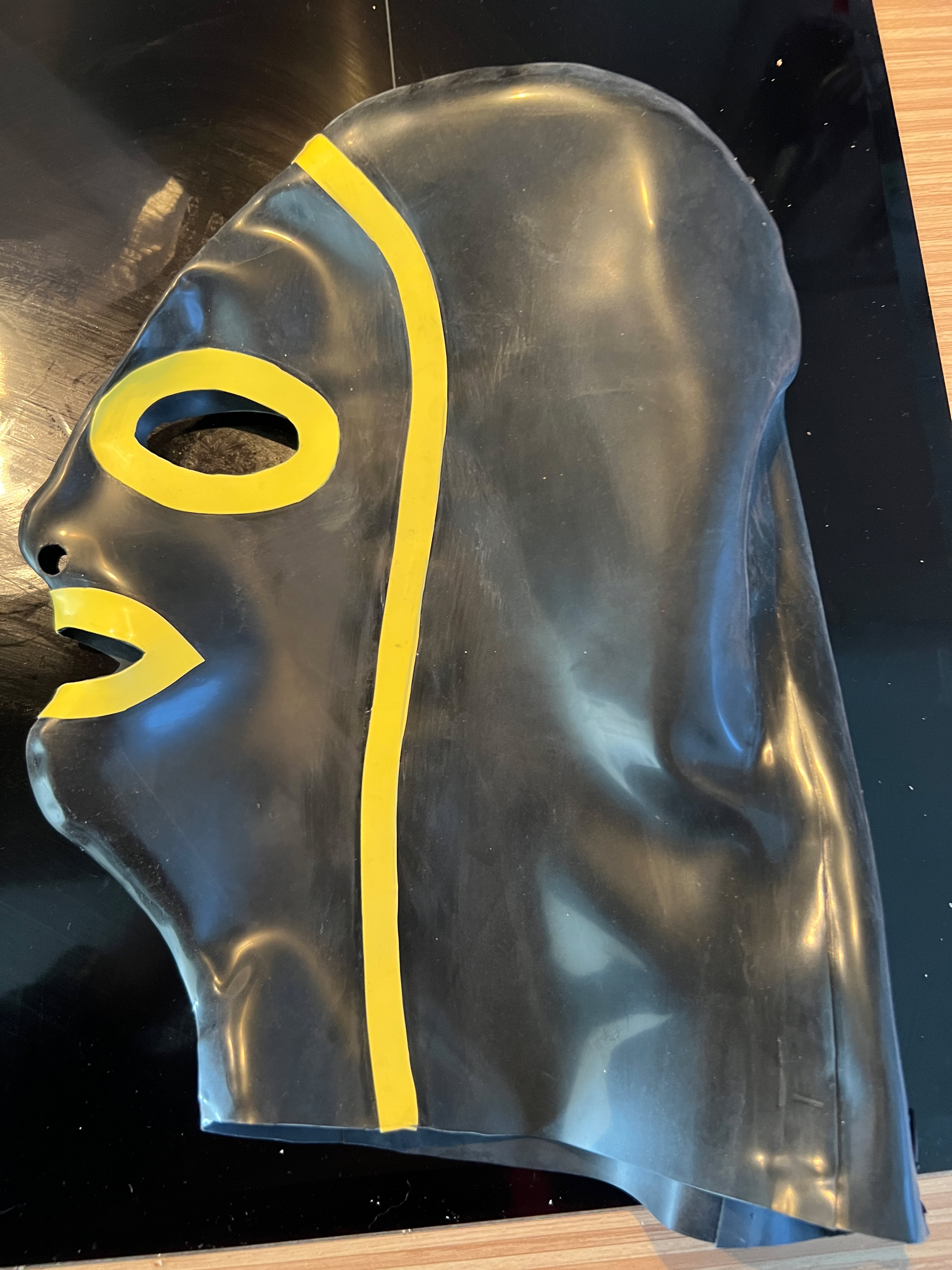 Gister een cadeau van Elenalatex ontvangen incl, een bij passend masker.Deze is uitgevoerd in mijn favo kleuren zwart / geel accenten om het feit te benadrukken dat ik ook een pisshoer ben.