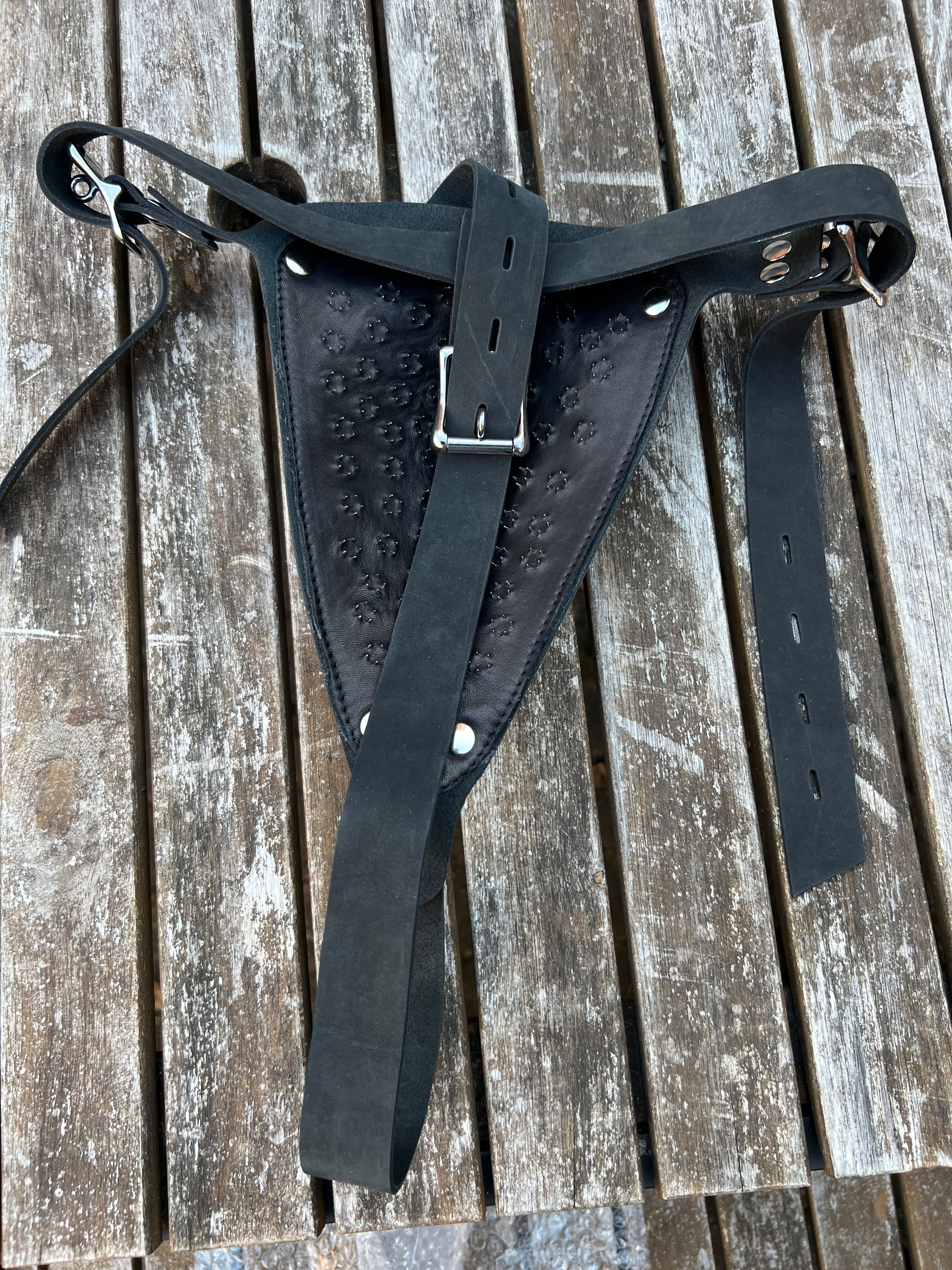 Gister avond binnen gekomen mijn nieuwe leren prik Jock met afsluitbare riemen.