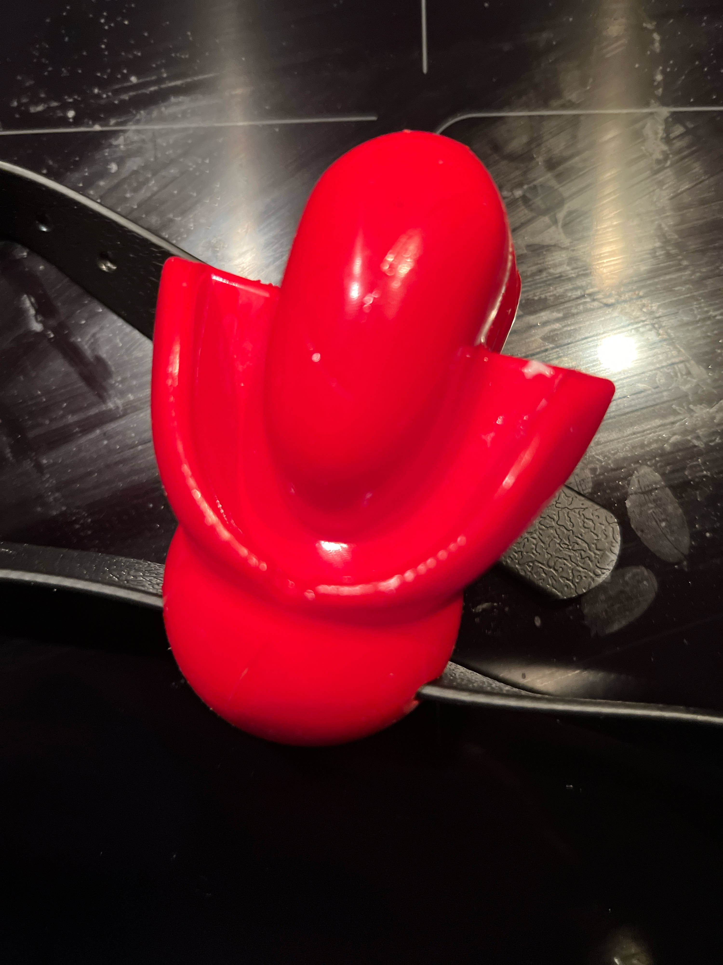 dit is een gag die de hele mond vult en de tong in een soort kom vast houd.