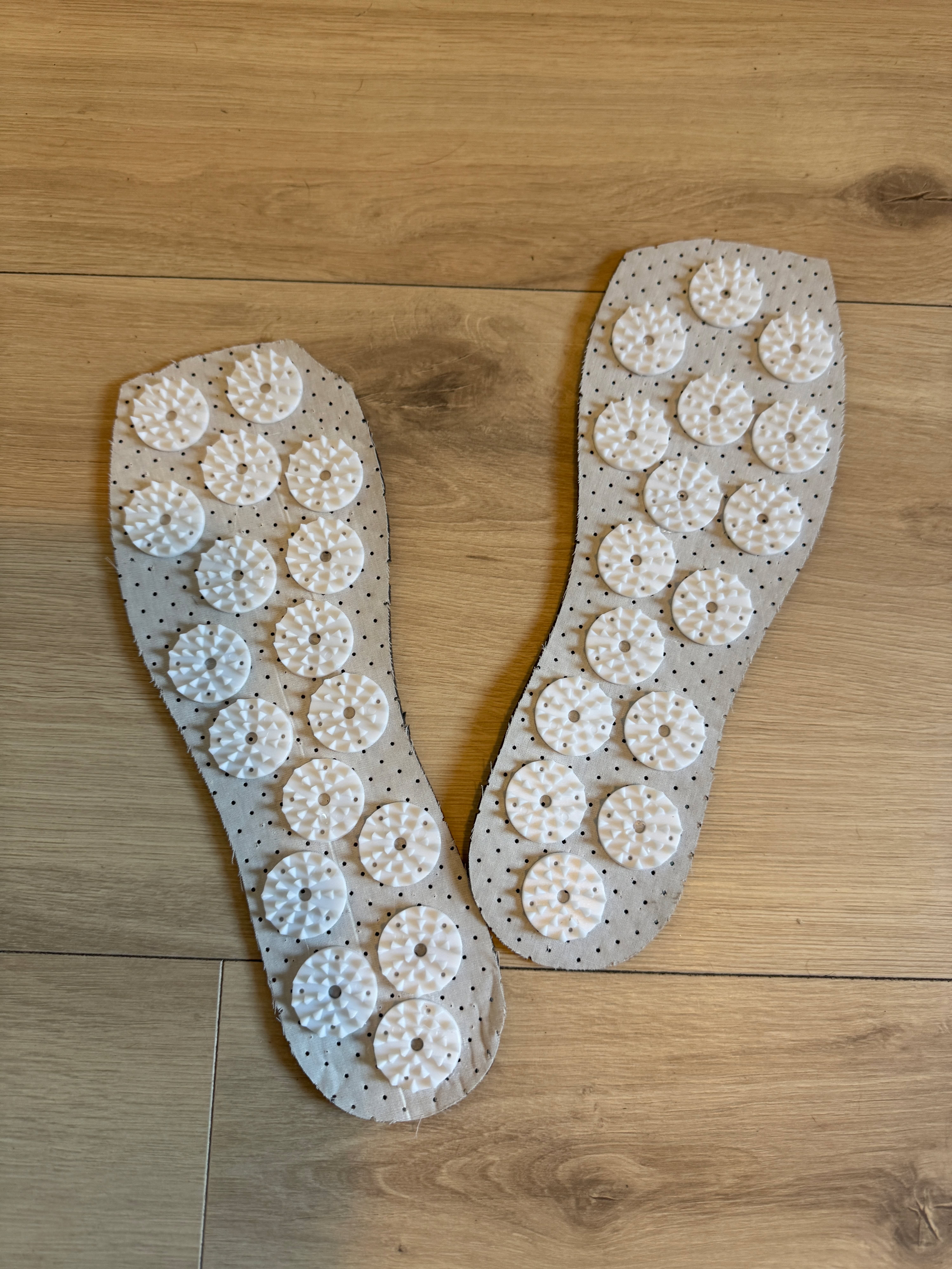 door wat zelf te zoeken op aliexpress, Action en op vinted heb ik nu van “massage schijfjes” en een goedkoop zooltje van de action leuke prik inleg zooltjes gemaakt.