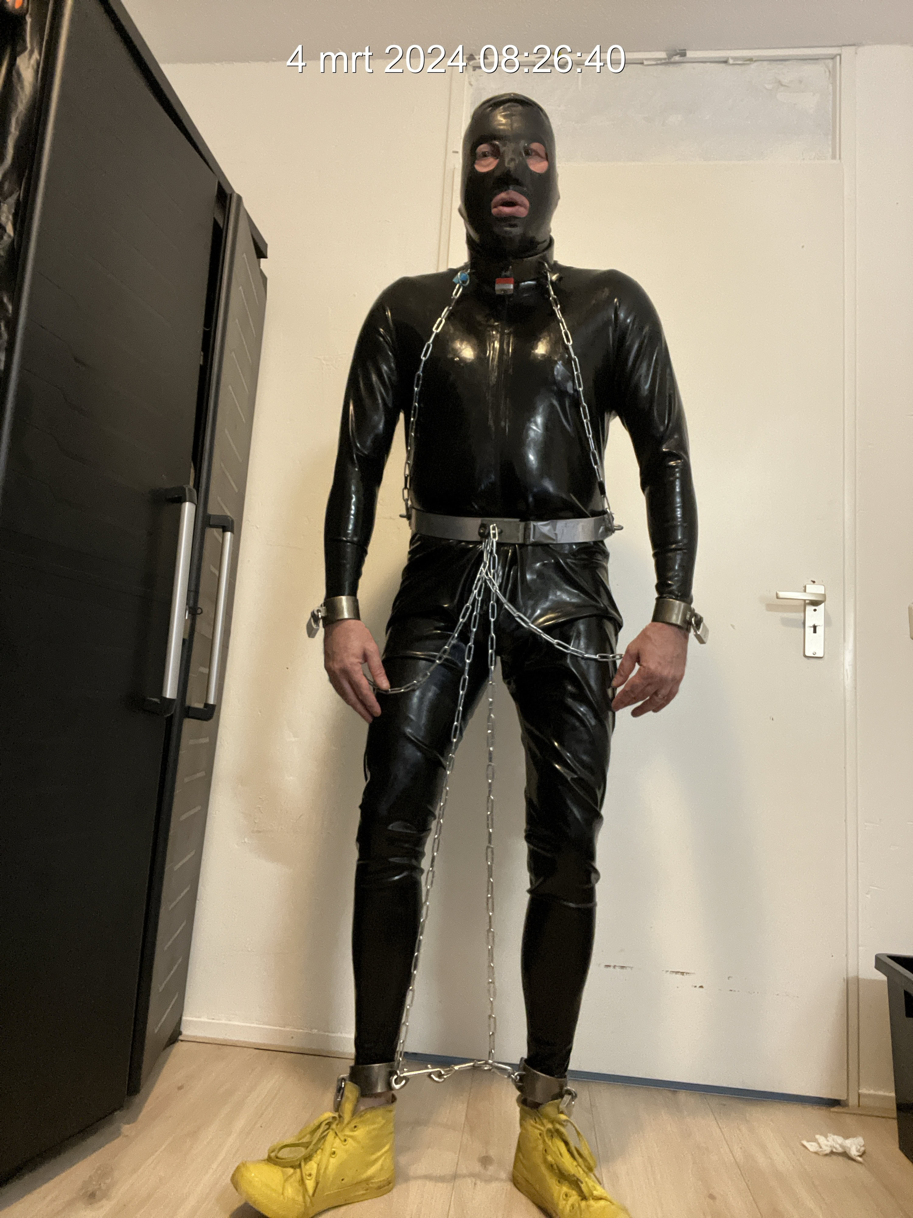 Dan ben ik als een gimp in volledig latex , geboeid , geplugd en met de nodig prik spullen .