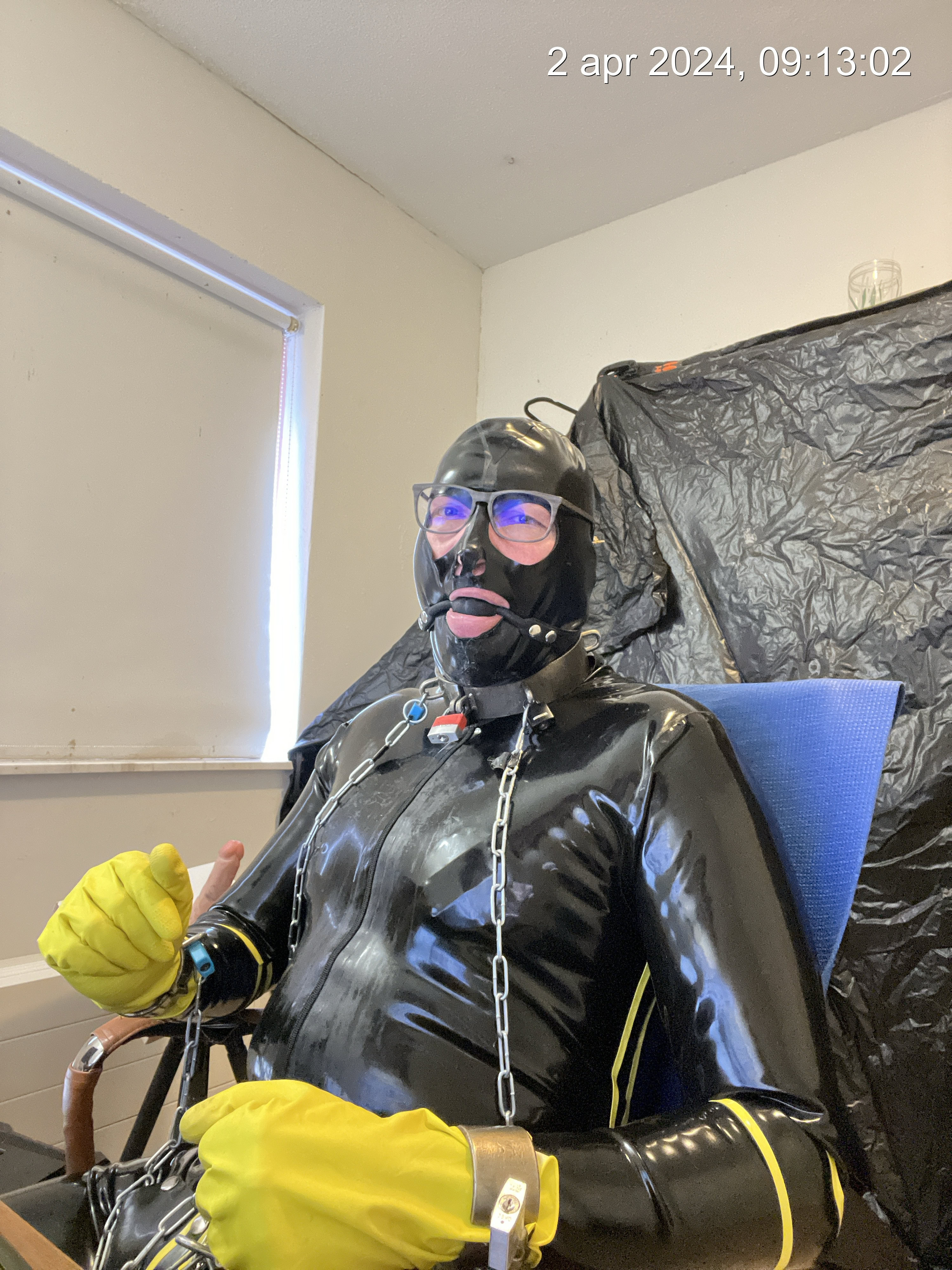 Ook geeft mijn Meester aanvullende opdrachten die ik gedurende de dag moet uitvoeren, 7 inch dildo pijpen, plug rijden,naar beneden lopen / kruipen ( door de kettingen kleine stapjes) mijn middag eten met geil /pis besmeren, wandelingen met hond in bepaalde gear over het latex, waar elke stap geluid maakt door de kettingen, elke stap pijn is door de prik slip en pads op tepels.