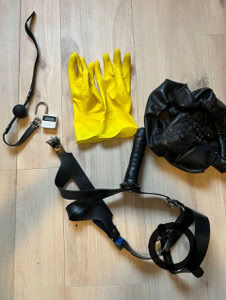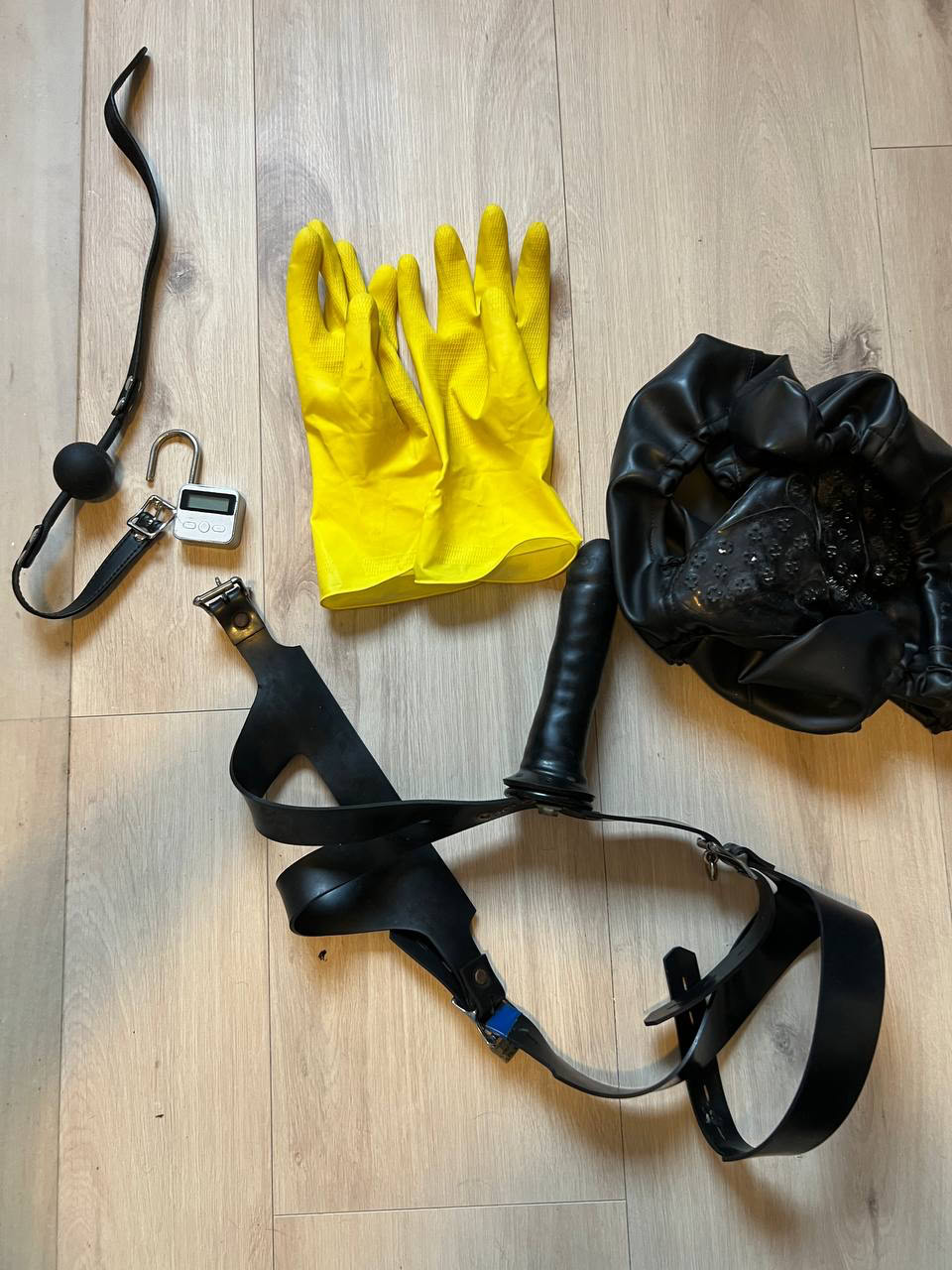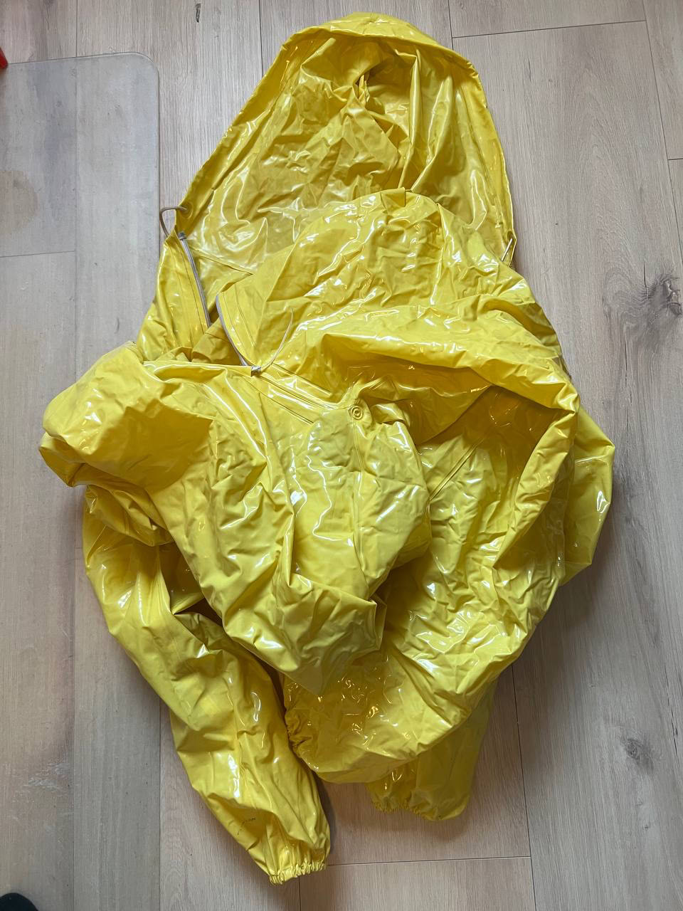 Ik heb van KinkSkinbiker een leuke blauw doorzichtige pvc overall gekregen die gezien kan worden als een regenpak :-)