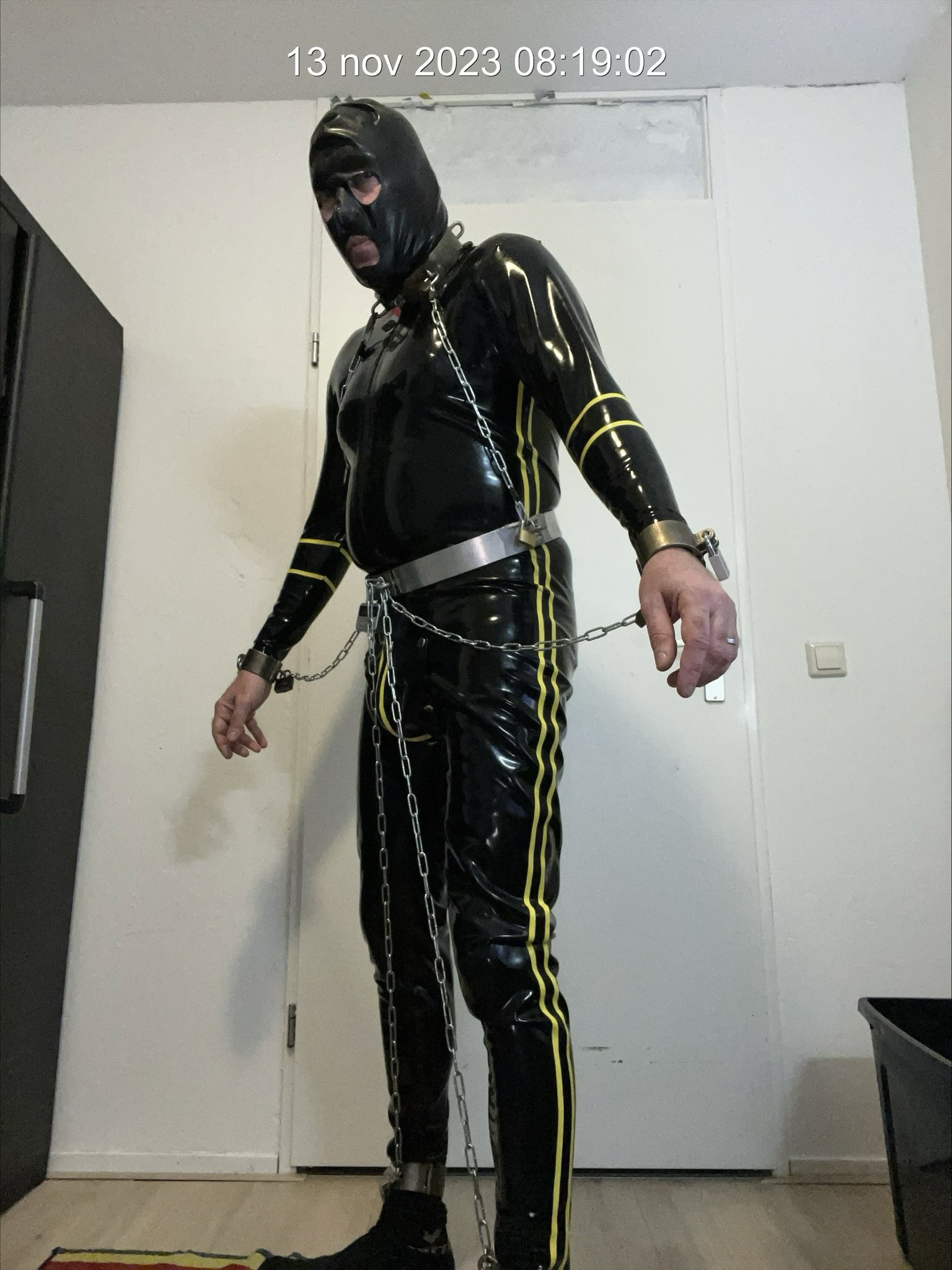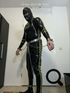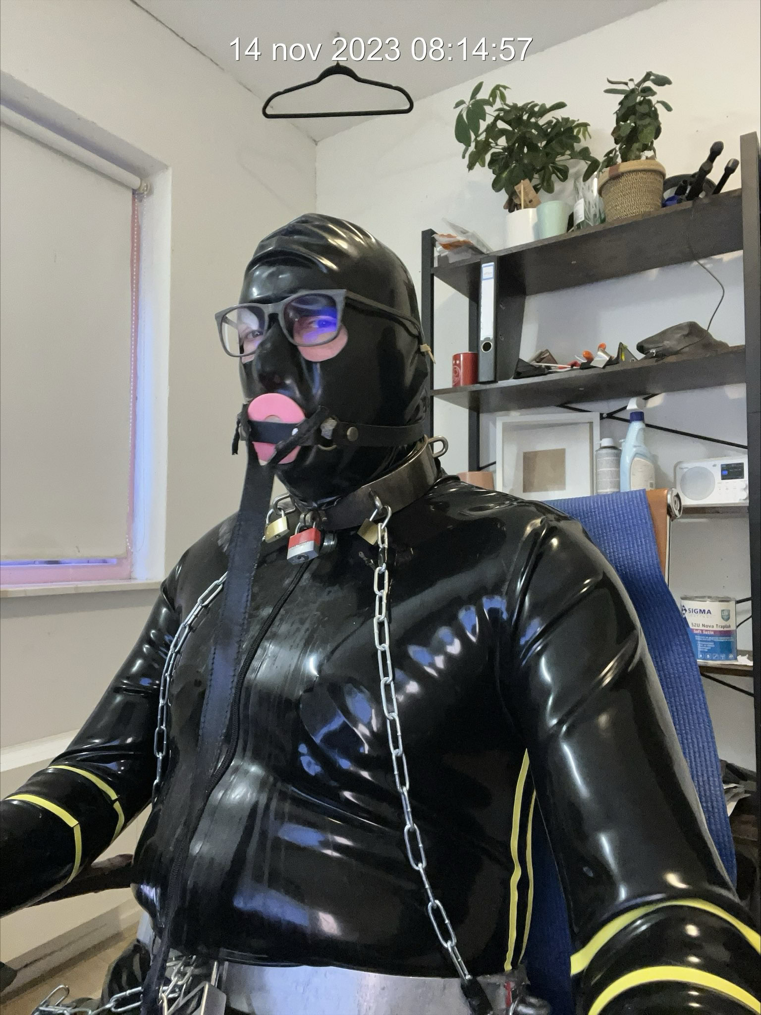 Werken is heerlijk op deze slaafse manier opgesloten en gehuld in latex ..