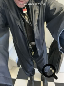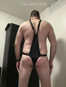 Vandaag weer naar de zaak maar wel met de XXL plug en de nieuwe leren slet body.