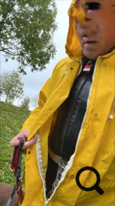Gelukkig was het een beetje aan het regenen anders was het helemaal een vreemd gezicht de gele verschijning… de wandeling was extreem pijnlijk en lastig door de kettingen die aan enkels zat en hals dus kleine pijnlijke stapjes met steeds een ruk aan nek. Probeerde de gordel rond middel wat te verplaatsen om dat minder te maken waardoor het ging.