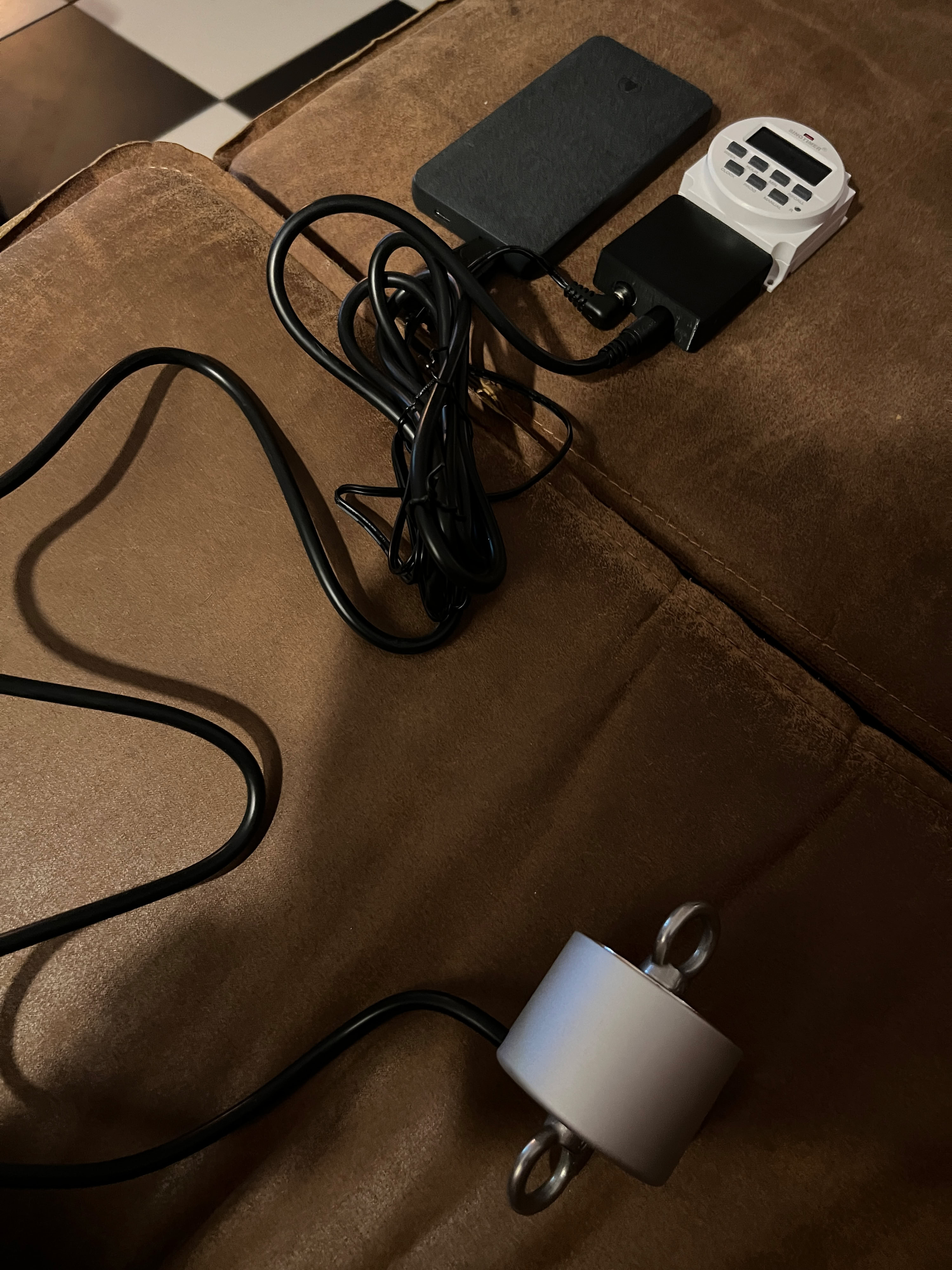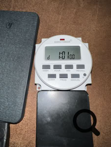 De magneet van de extra timer zit vast met slot aan de ketting. De timer stond al ingesteld op 1 uur.