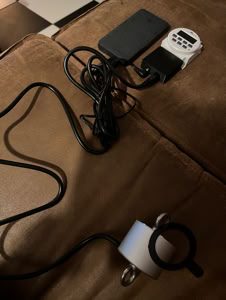 Na de periode waarbij de oogkleppen dicht waren hoorde ik de timerbox opengaan. Ik schoot even in paniek omdat mijn polsen nog niet los waren. Nadat ik de oogkleppen had verwijderd zag ik geen lampje meer branden op de timer en dacht: “Oh nee”, maar ongeveer een minuut later was het ‘plop’ en liet een O-ring los van de magneet.