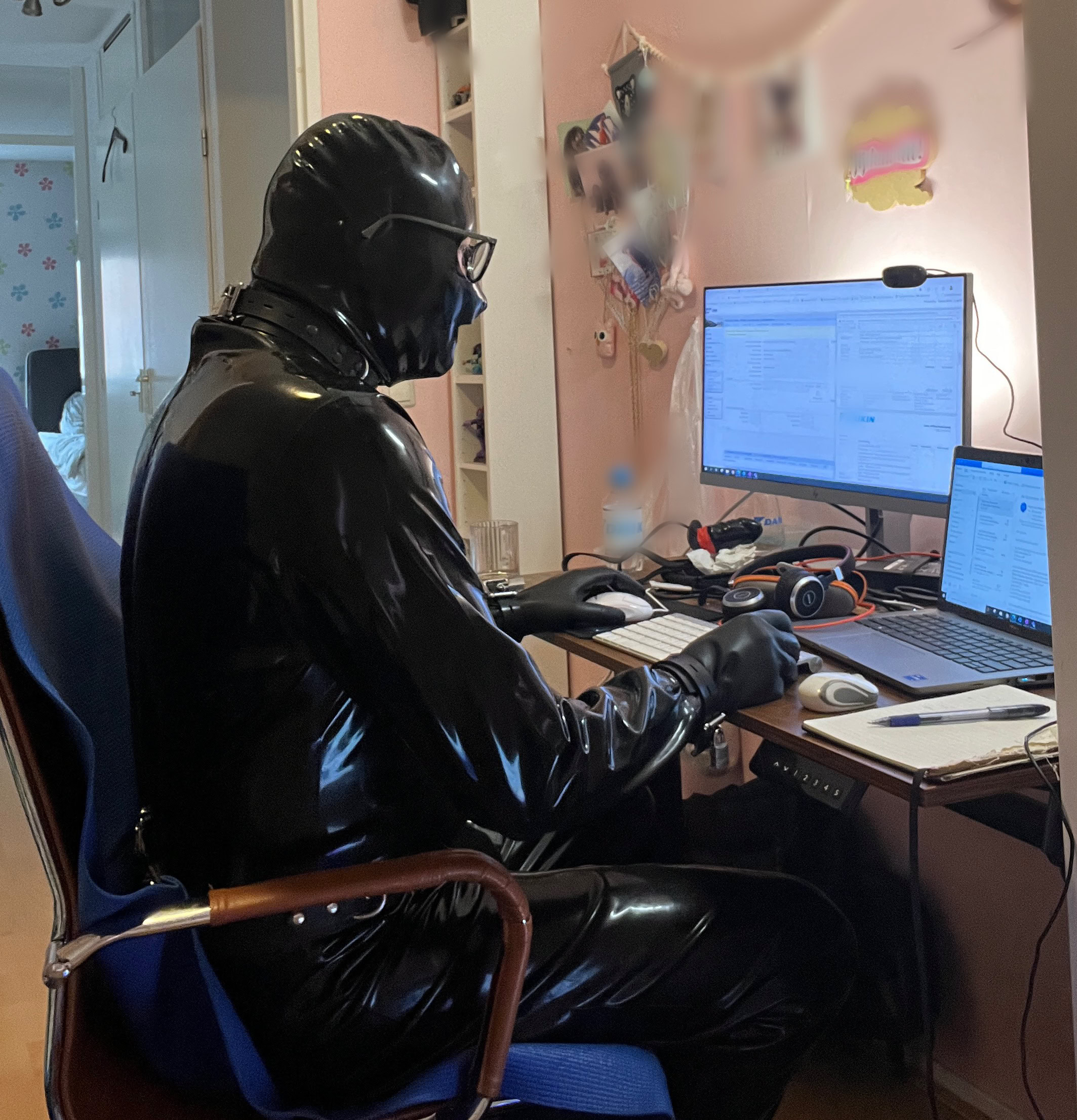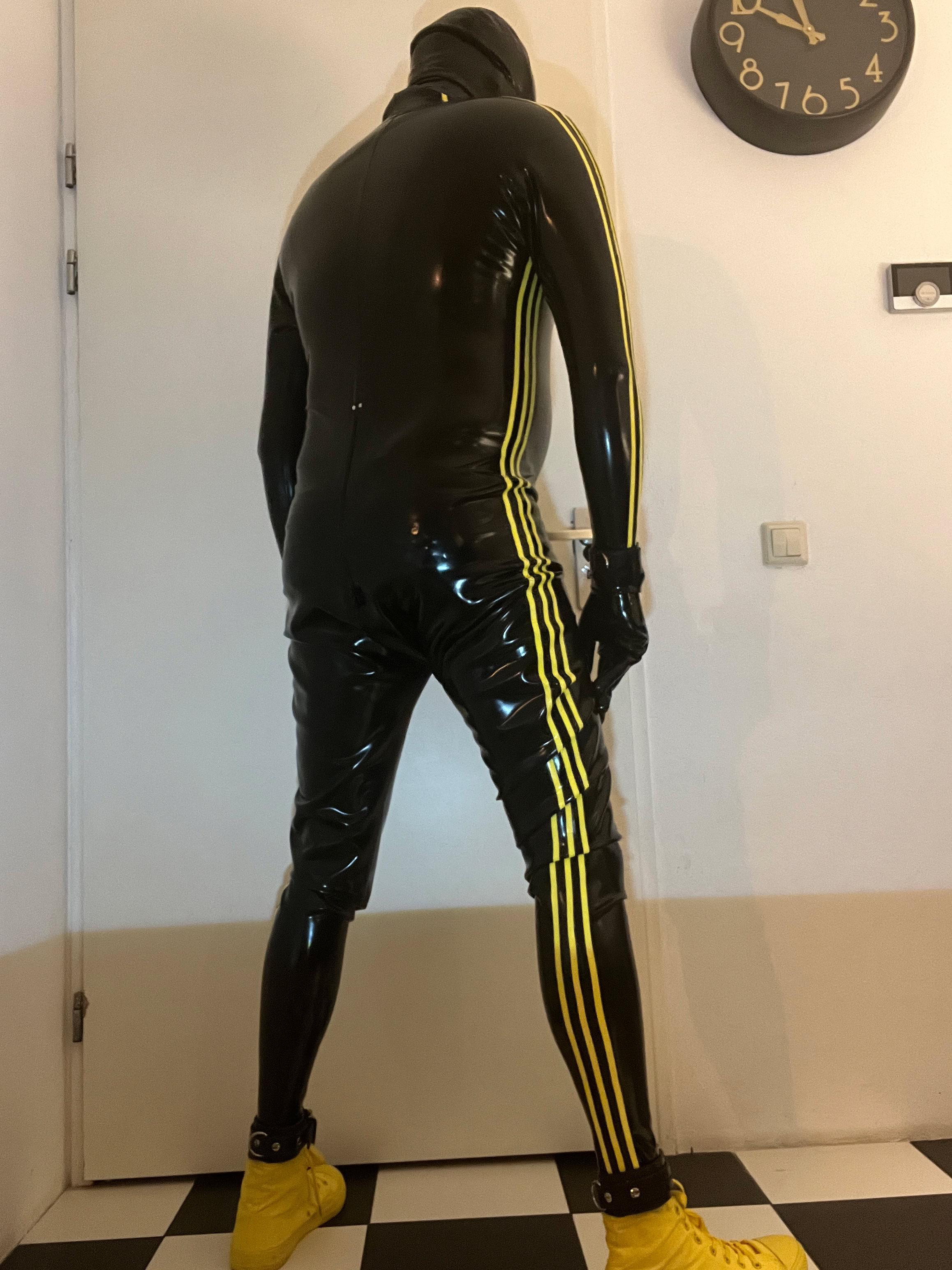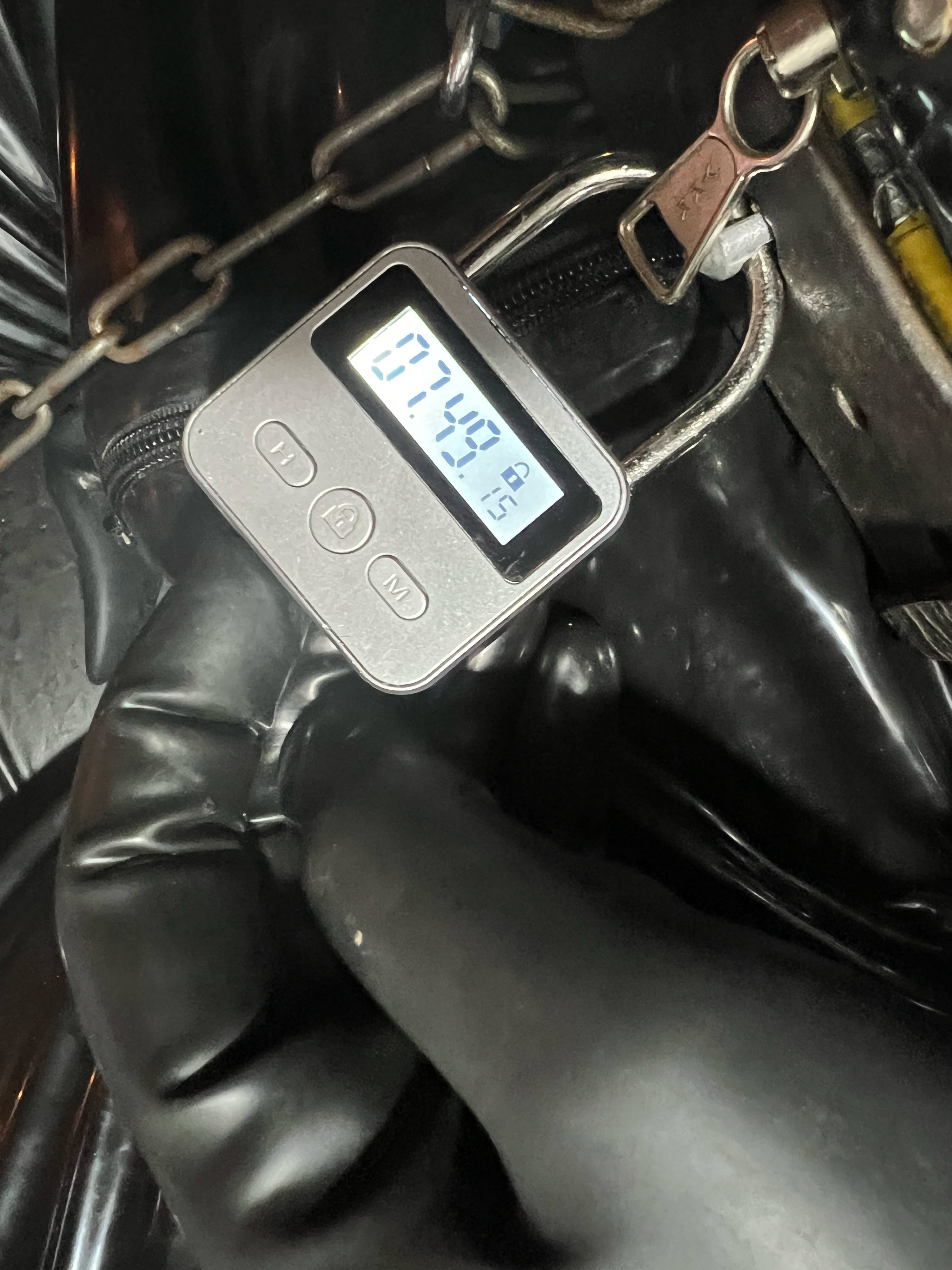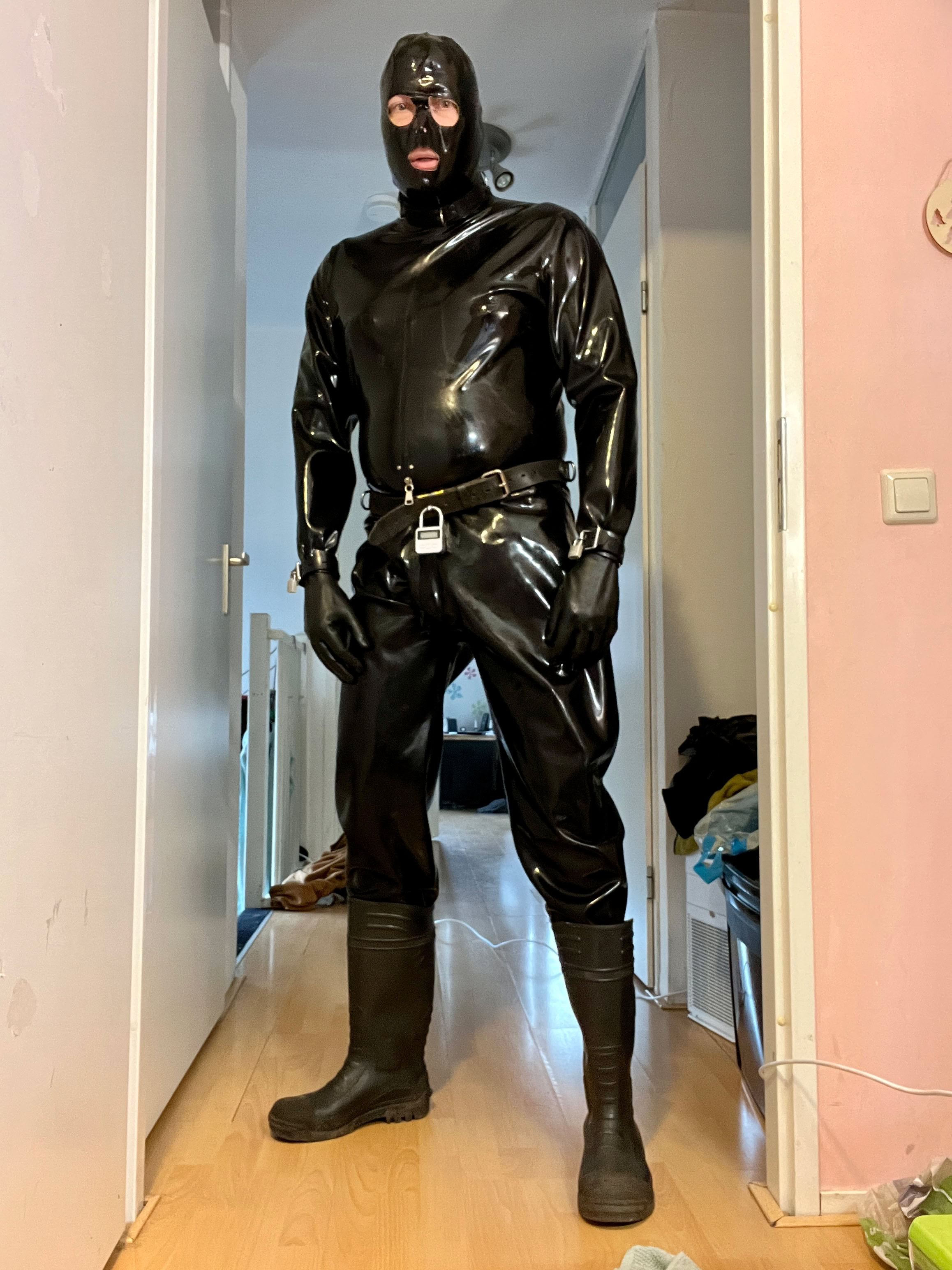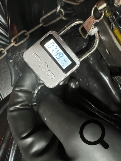 Toen ik eenmal vast zat, deed ik een blik op de timer rond de riem rond mijn middel, die ook nog vast zat aan de ris van de suit . Ik schok me een ongeluk en raakt even in paniek …. Er stond nog 7:49 op de timer en had dus de timer nog op de werkdag tijd staan …. Gevolg ik zat tot 5:30 in de ochtend in de suit opgesloten met de king plug diep in mijn kut, de prikkers die me kwelde .