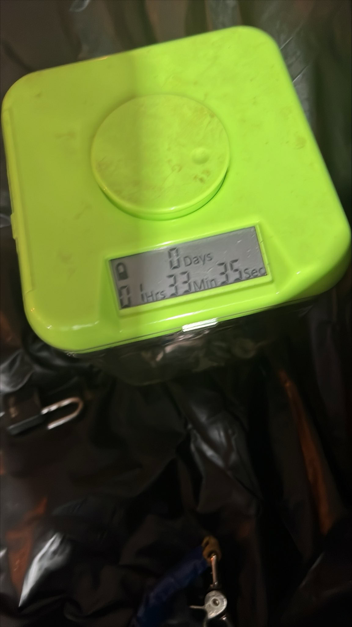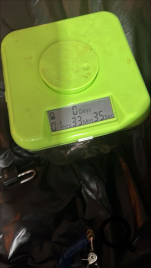 Toen alles aan was, wilde ik de timers aandoen en deed de timer rond mijn middel dicht en van uitgaande dat ik de tijd had ingesteld, daarna deed in de timerbox op de 1:30 voor de sleutels voor de bondage .