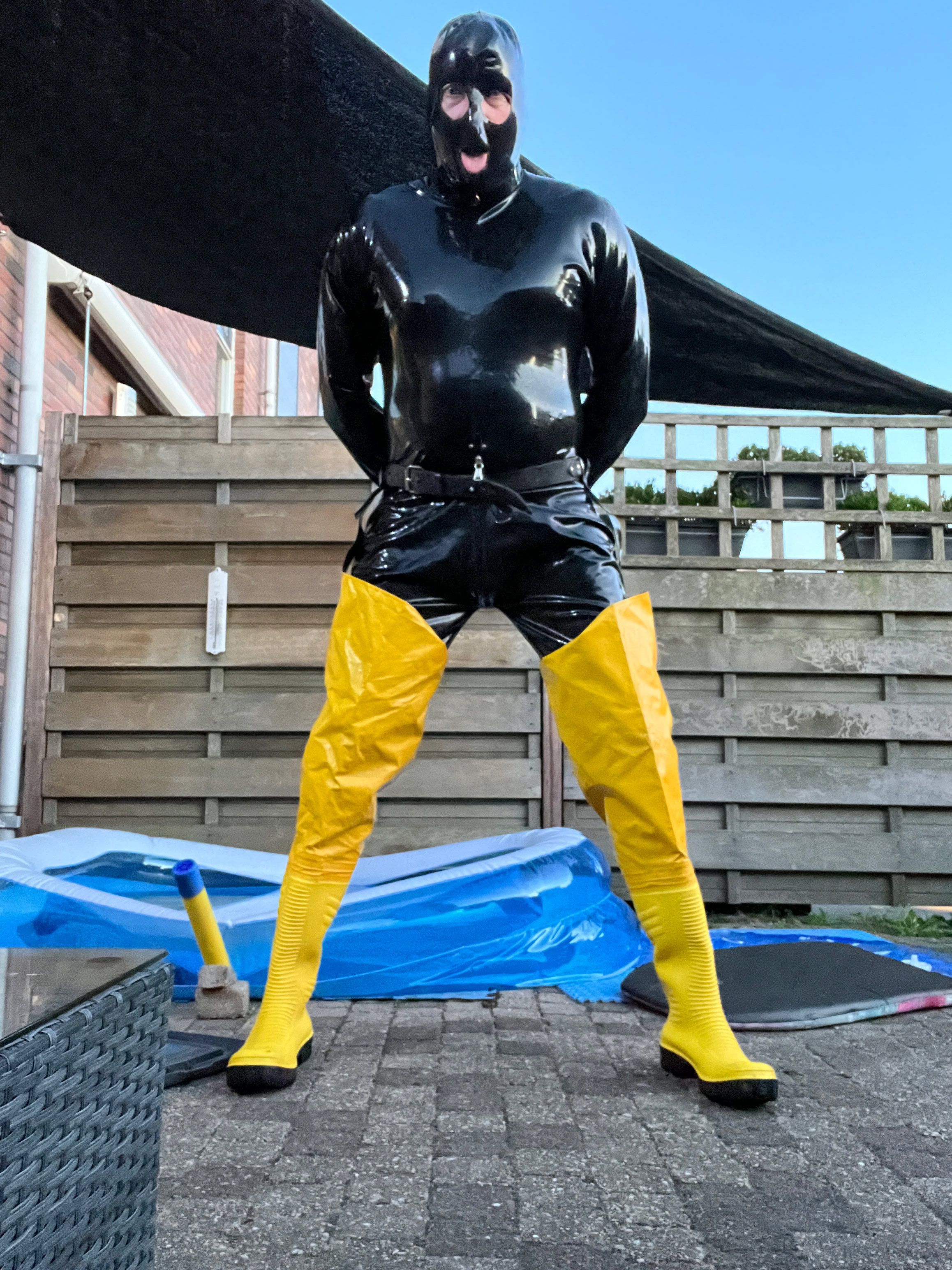 Gister avond voor 1 uur en 40 minuten zitten op de T-rex plug als opdracht gekregen. Natuurlijk gehuld in full latex prison suit aangevuld met gele lieslaarzen . Daarna met kettingen vast in een zelf bondage en alle sleutels in de timer box voor de opgedragen tijd.