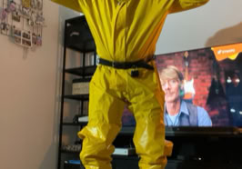 Thuis aangekomen gelijk suit weer dicht en masker op, en gefuseerd geil begon ik aan klaar maken slaven lunch : pis Brinta hap.