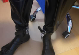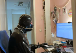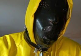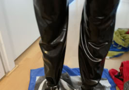 Vandaag voor het eerst in mijn heavy dikke latex bondage catsuit, van top tot teen in dik latex opgesloten met de ritsen op slot. Met er over mijn rubber boeien en riem met slot rond middel.