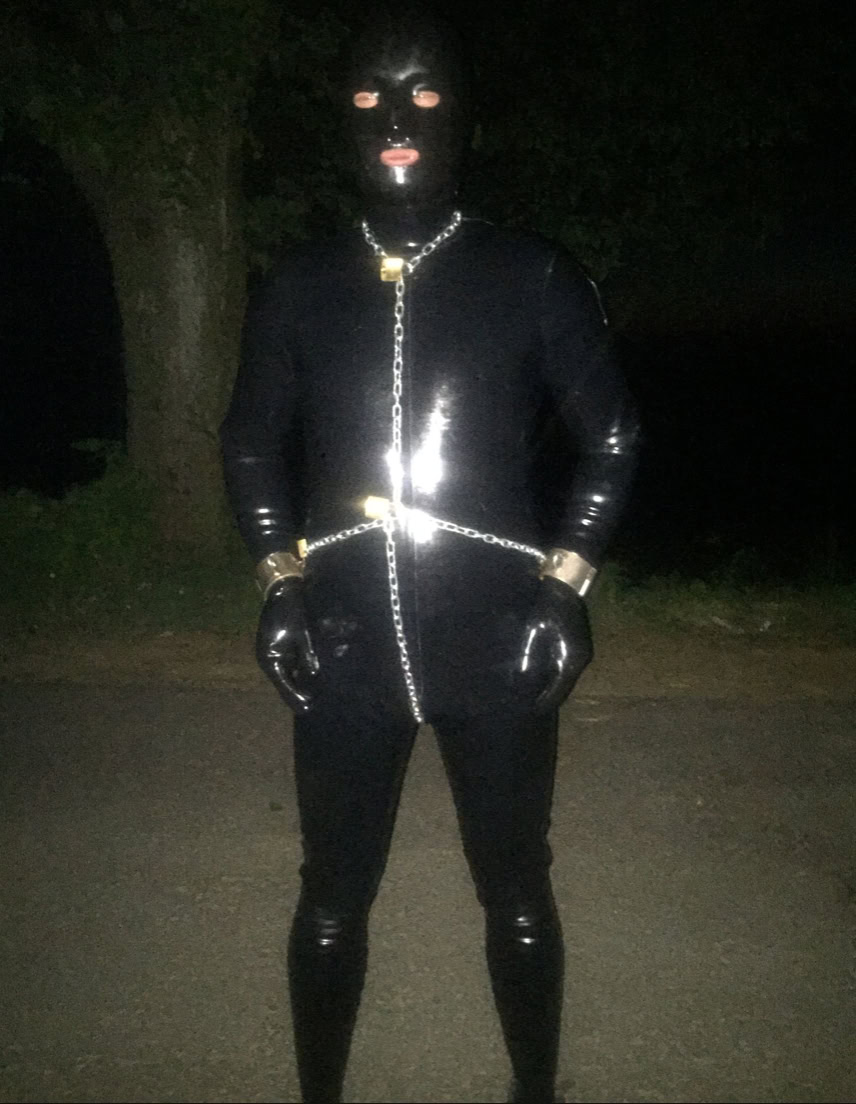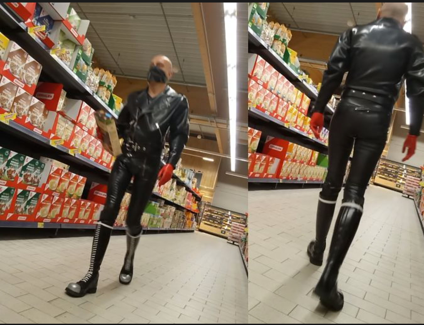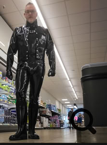 Online winkelen en dan in full latex, alles opgesloten en gevuld de deur open doen.