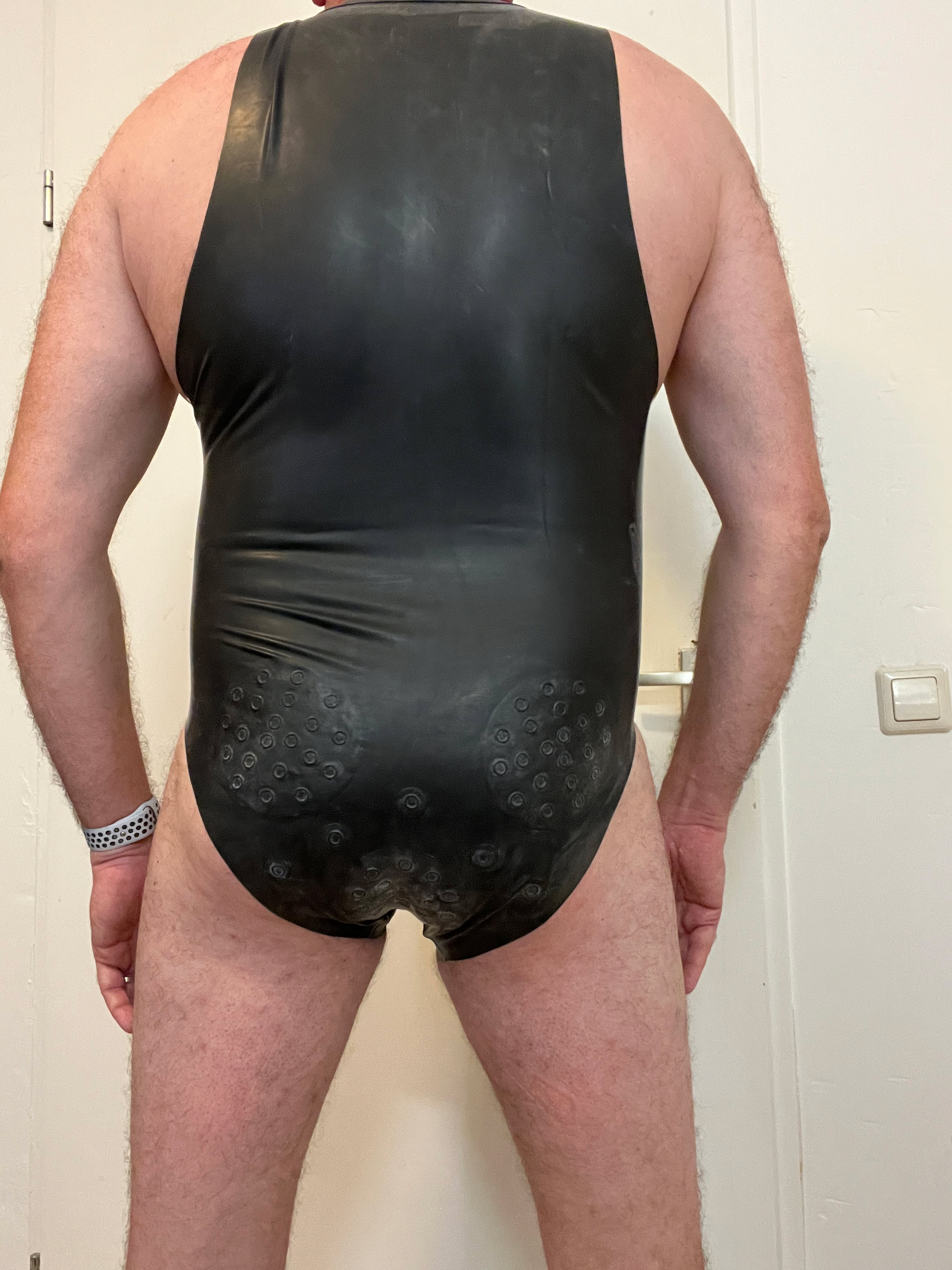 Dikte geeft een andere sensatie dan latex maar heerlijk. Door dat het strakker rond lichaam zit , werden prikkers en de gordel met plug hard aangedrukt