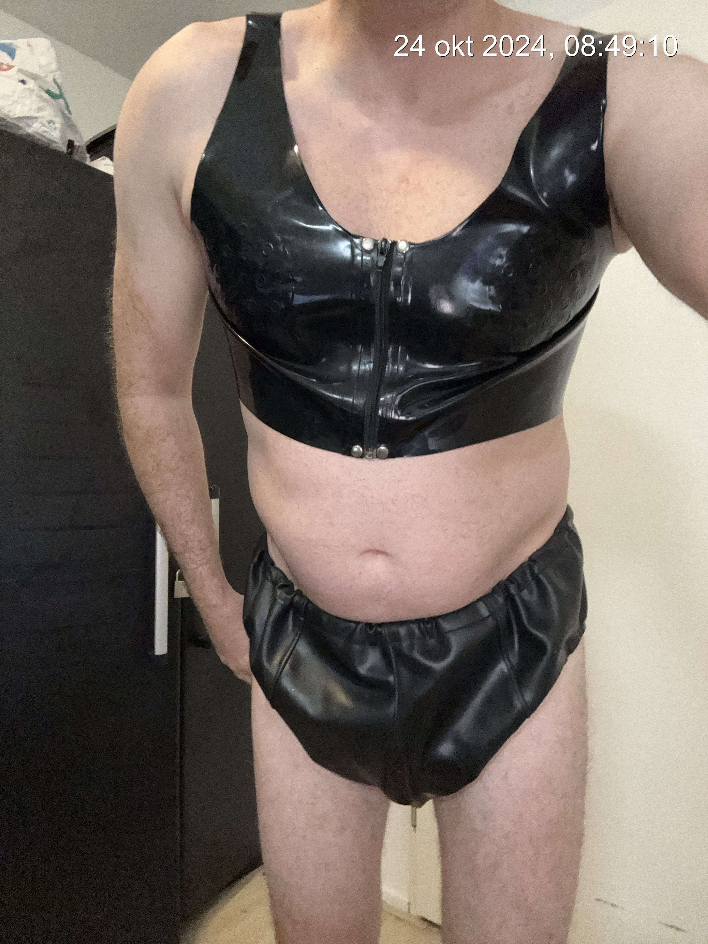 Omdat ik niet altijd latex kan dragen, moest ik van mijn Meester andere ondergoed kopen dan stof boxer wat ik voorheen droeg. Latex, pvc, lak of zelf een luier is wat ik moet dragen. Dus als ik naar mijn werk ga of slaap draag ik dit.