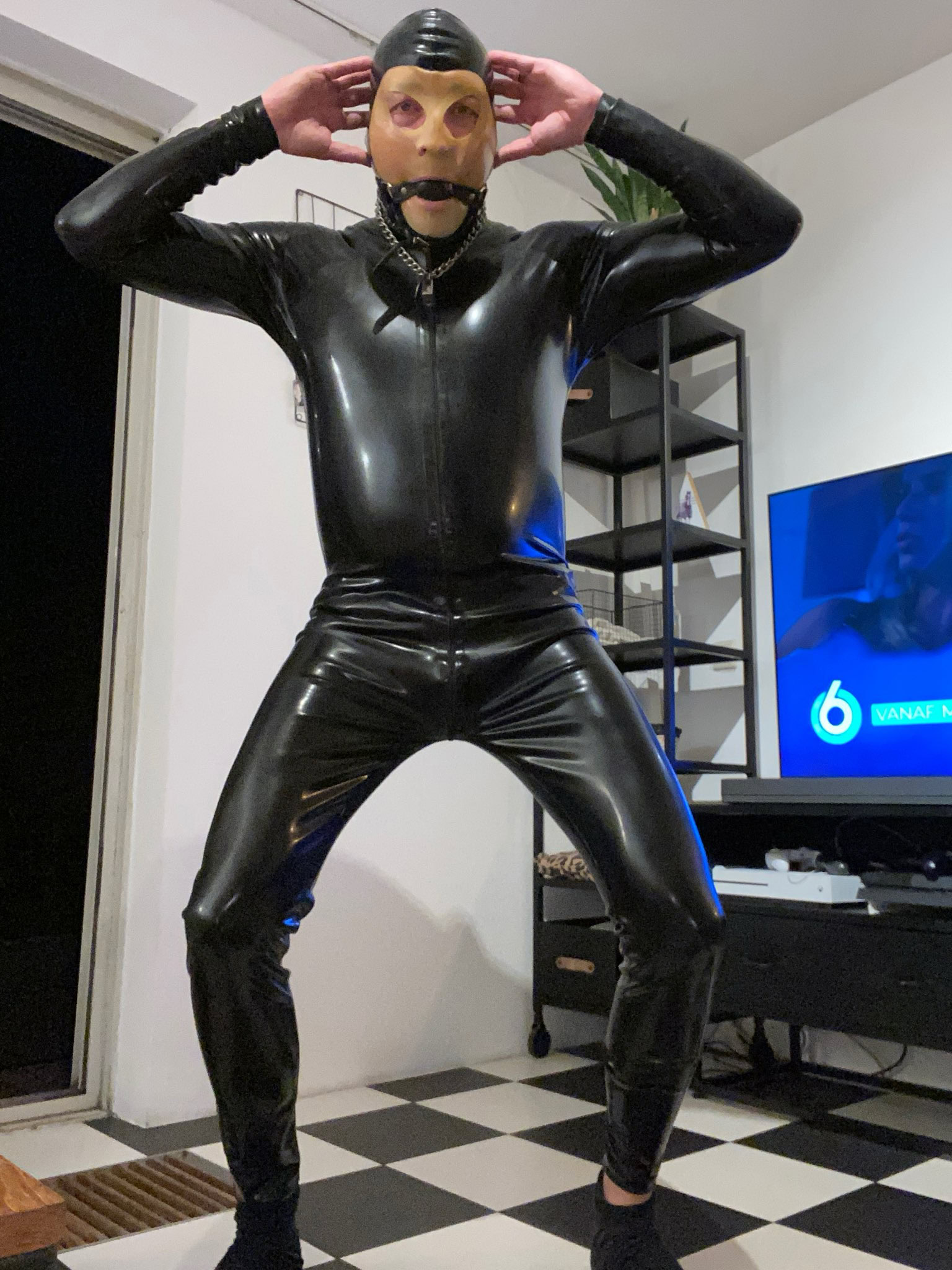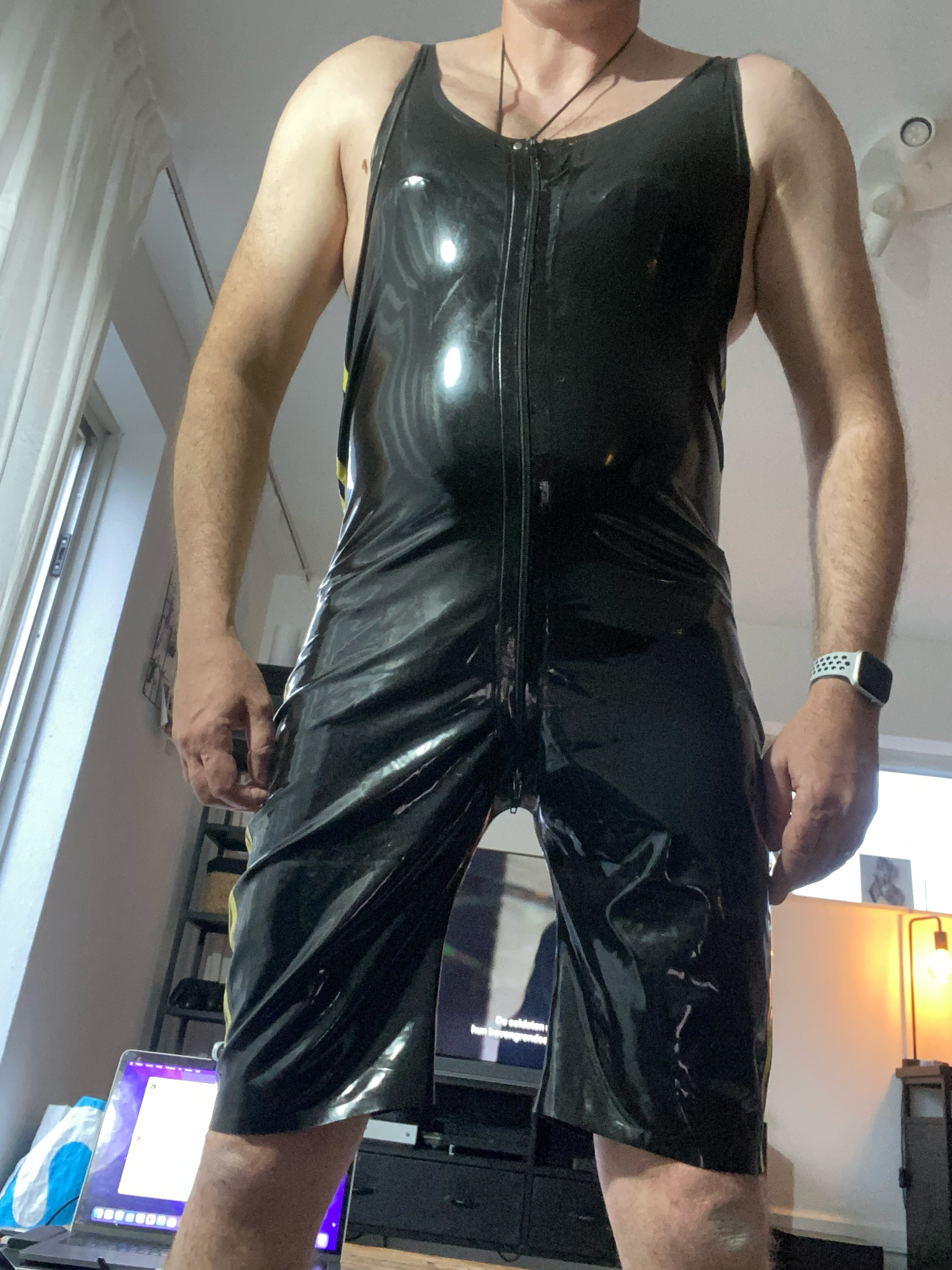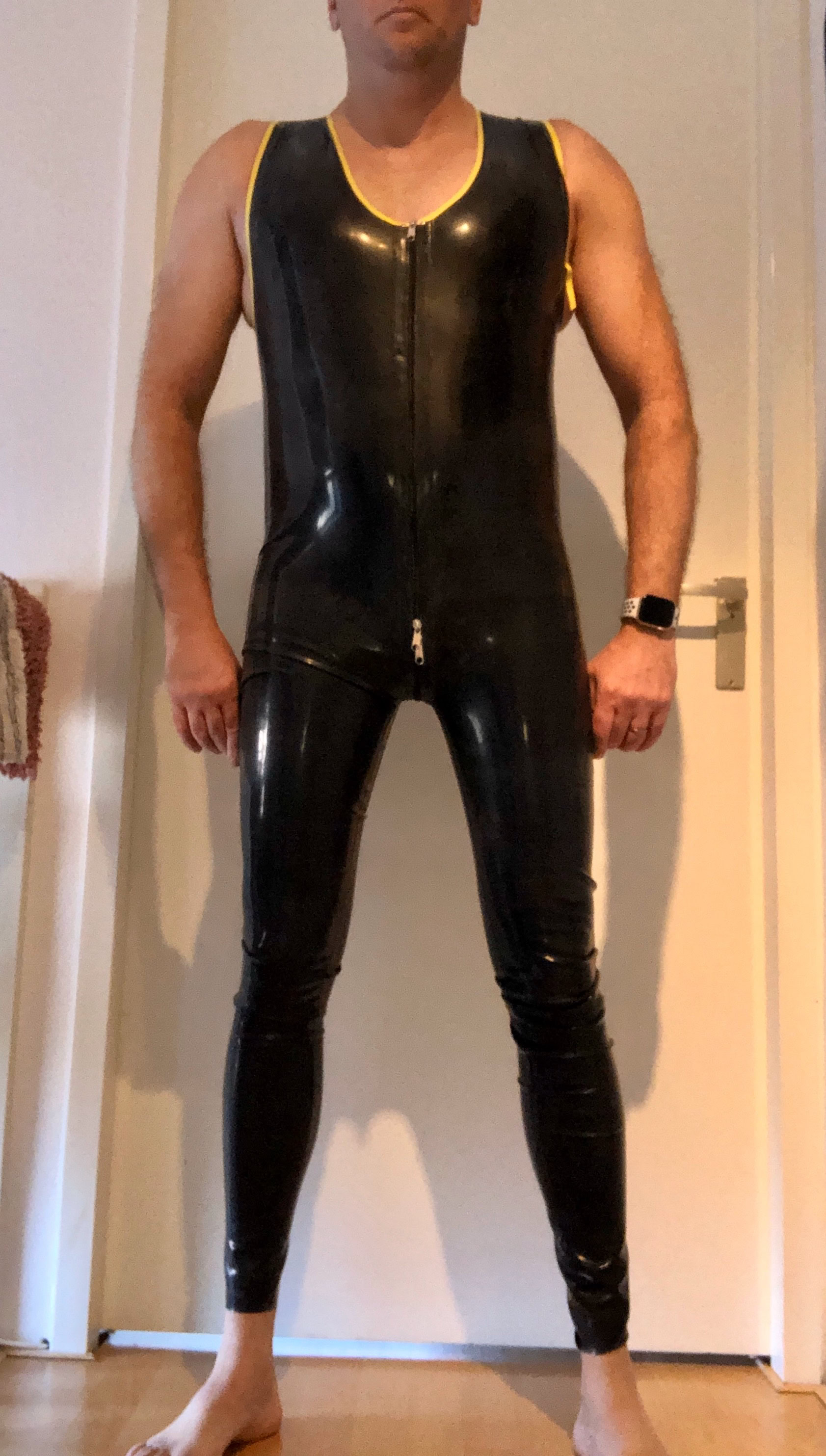 Catsuit 0,4 dik met 3 weg rits op rug en door kruis om te dragen bijvoorbeeld tijdens het thuis werken wat ik 2 of 3 dagen per week doe.