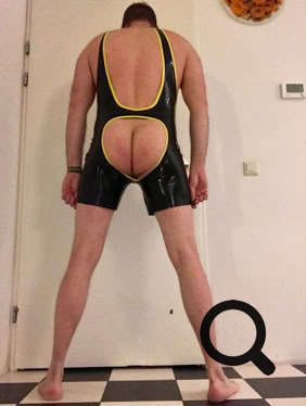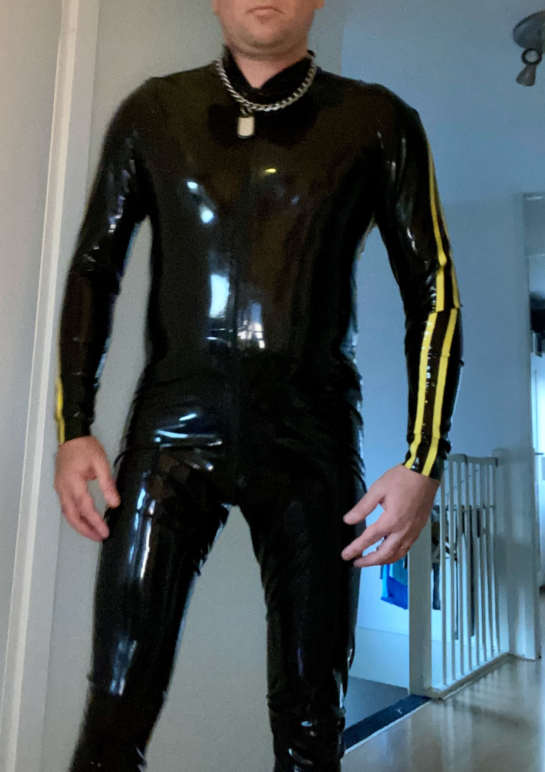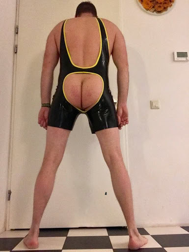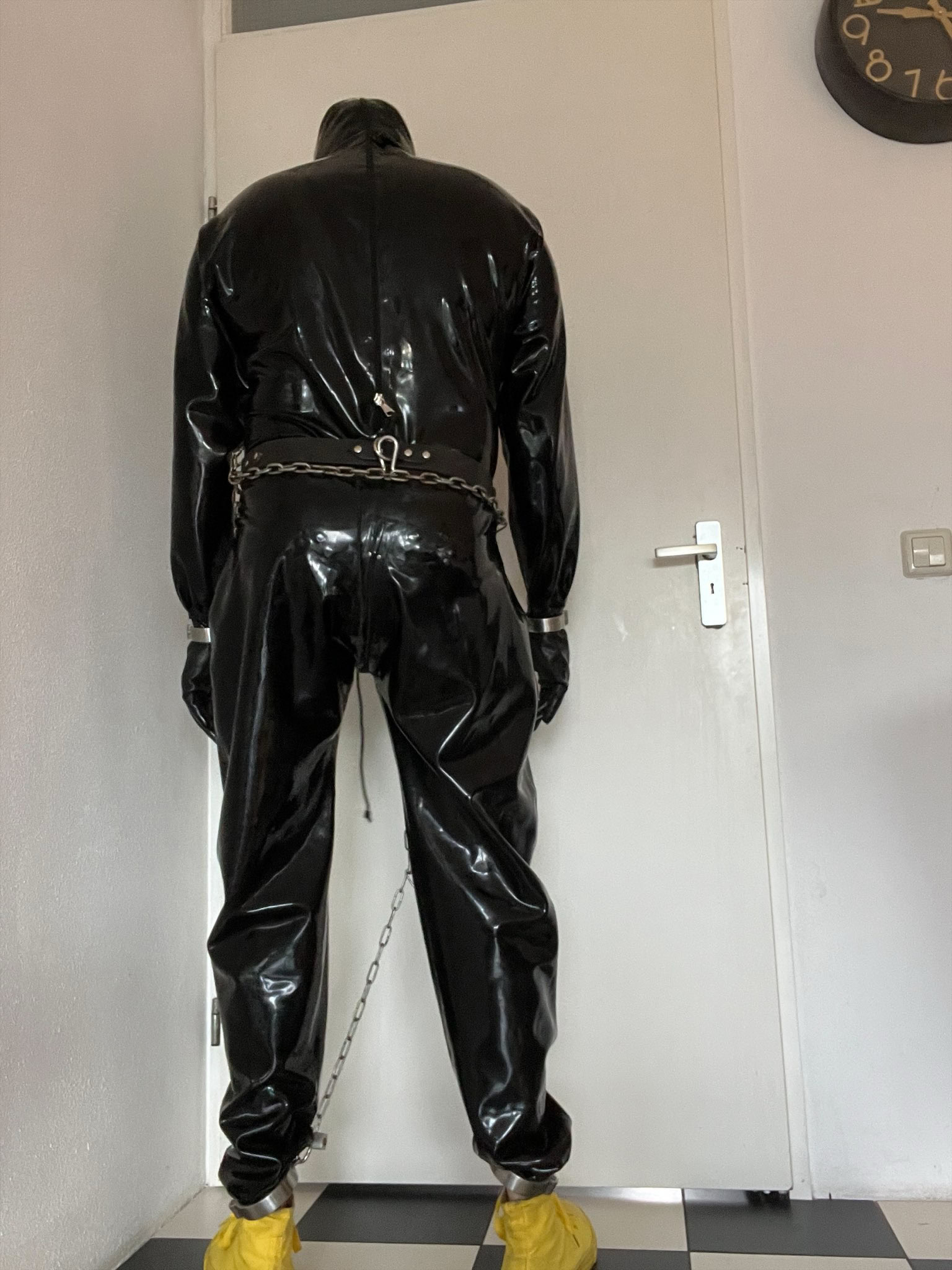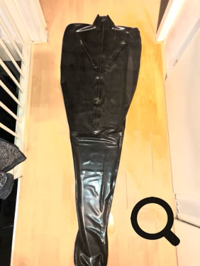 Catsuit 0,4 dik met 3 weg rits op rug en door kruis om te dragen bijvoorbeeld tijdens het thuis werken wat ik 2 of 3 dagen per week doe.