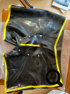 latex geel masker van dik 0,8 ( ipv 0,4 ) latex.