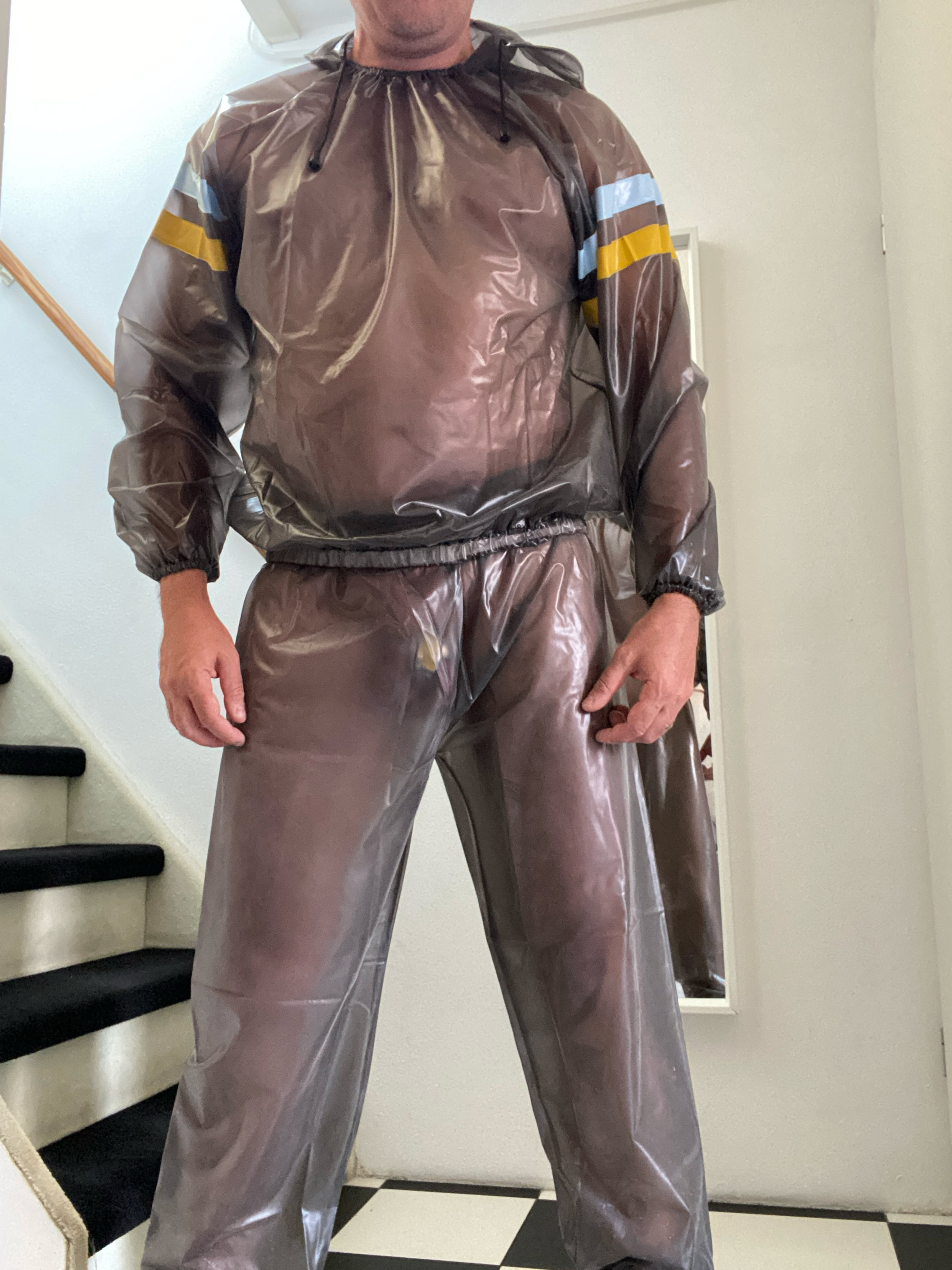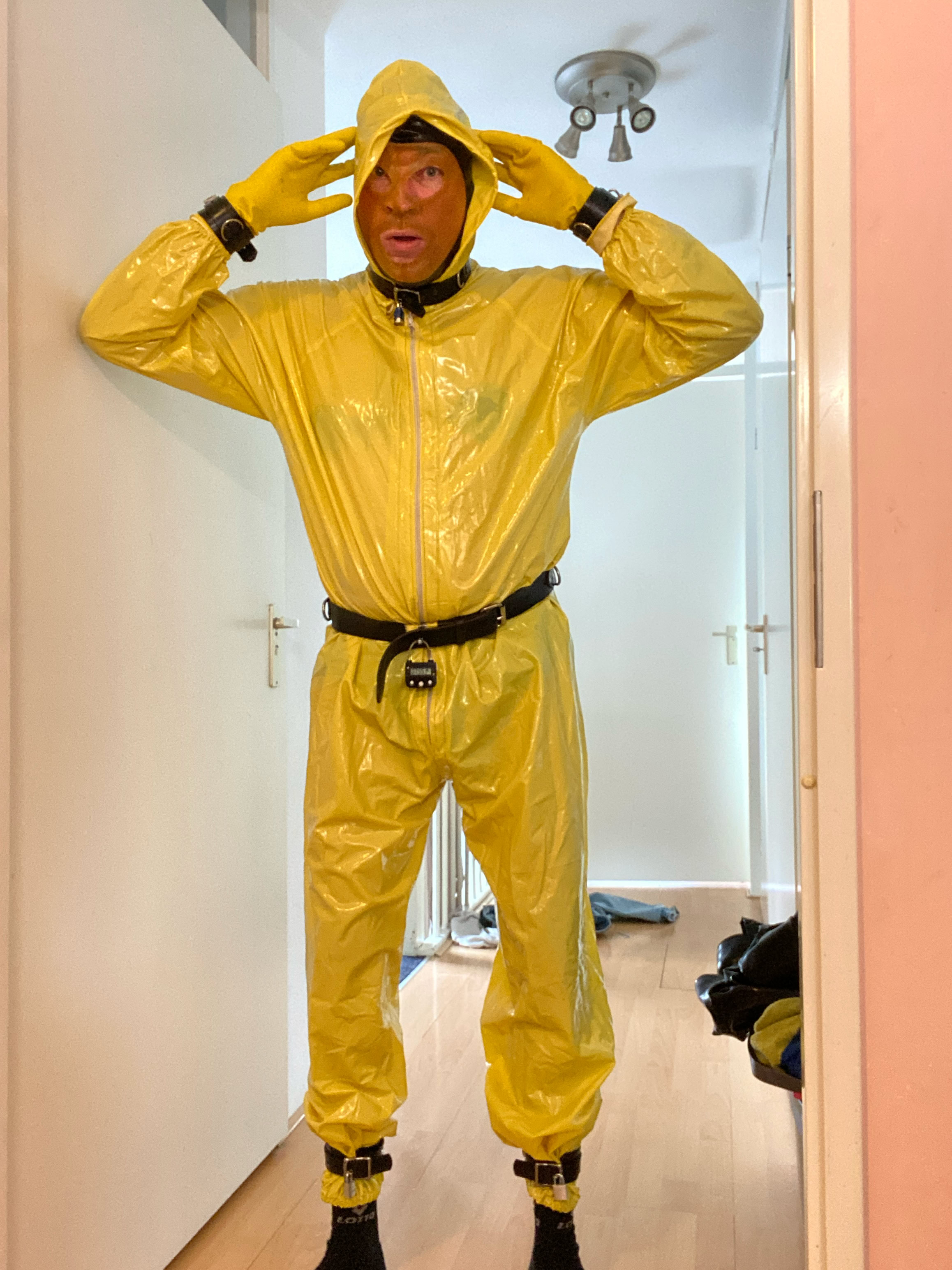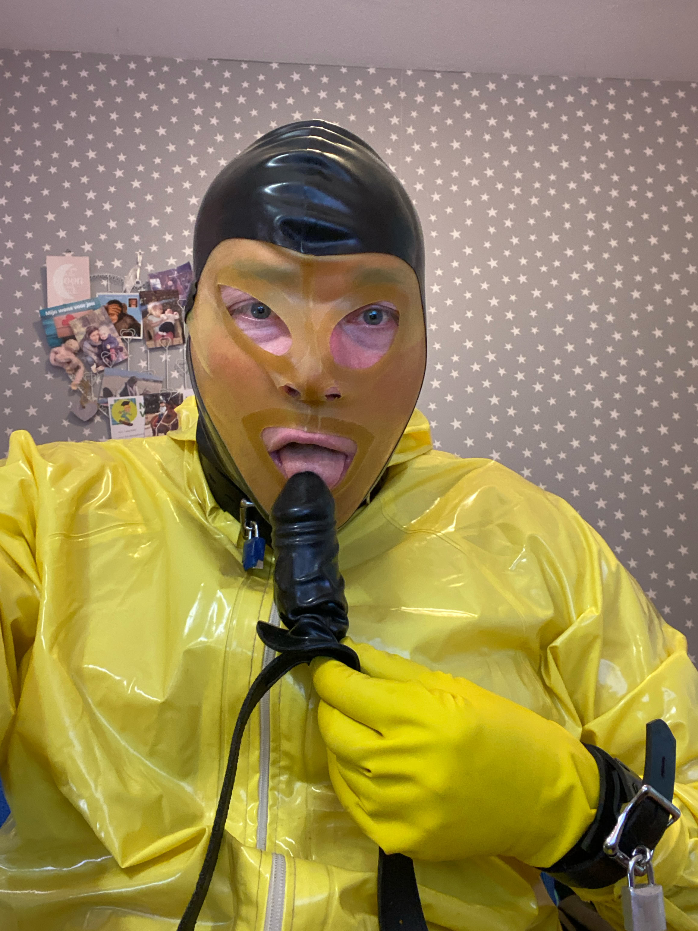 Pvc kleding zoals regen kleding vind ik erg geil.
