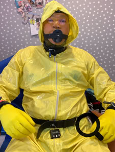 Daarover een pvc romper aan, een latex broekje of latex romper maken het af en extra vernederd.